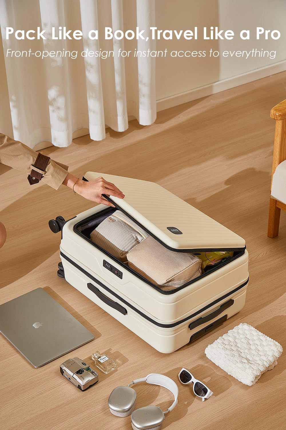 - FRONT-LOADING CONVENIENCE: Revolutionize your travel experience with our front-loading design. Unlike traditional clamshell suitcases, this feature allows quick and easy access to your belongings while saving space—ideal for tight hotel rooms or crowded areas.