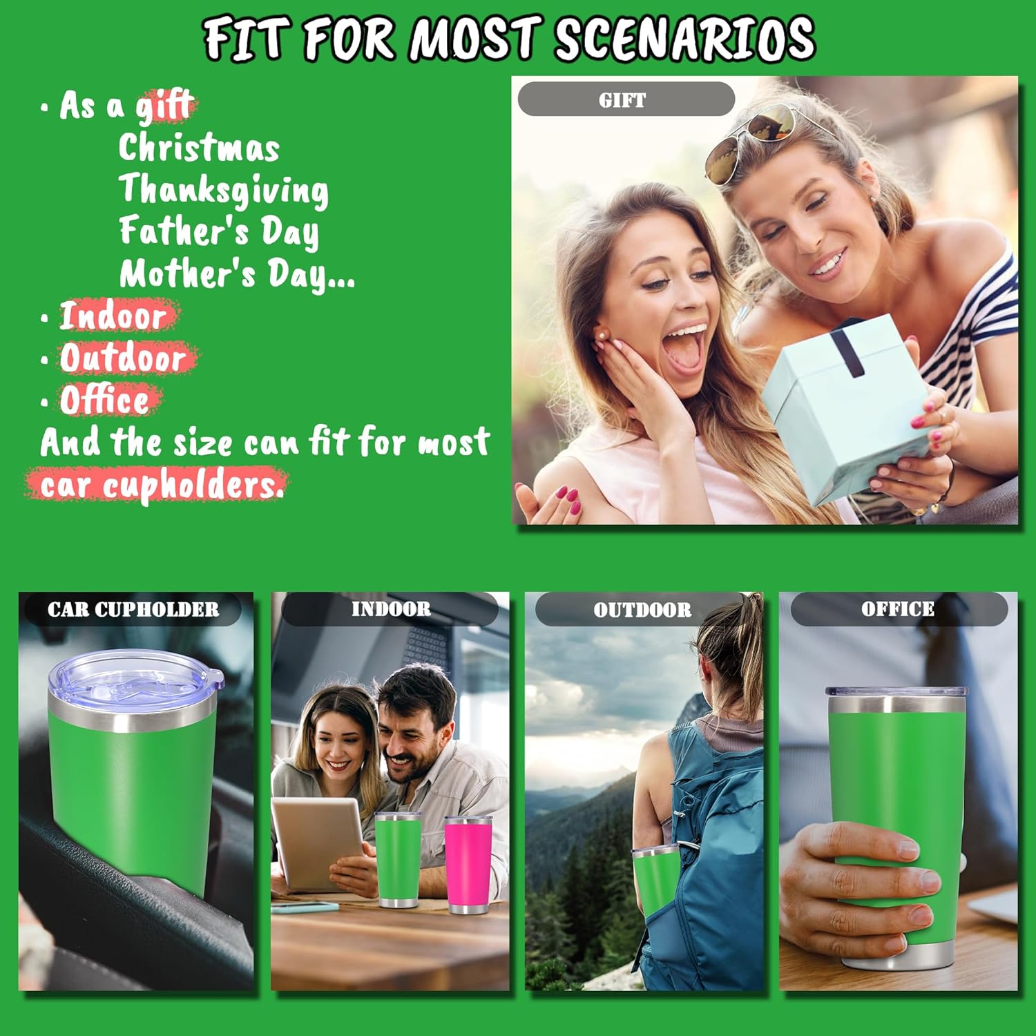20 oz Tumbler with lid Double Wall Vacuum Insulated Tumblers Stainless Steel Coffee Mug Travel Coffee Tumbler Powder Coated Tumbler Cup Keep Hot&Cold - (Green 1 Pack)
