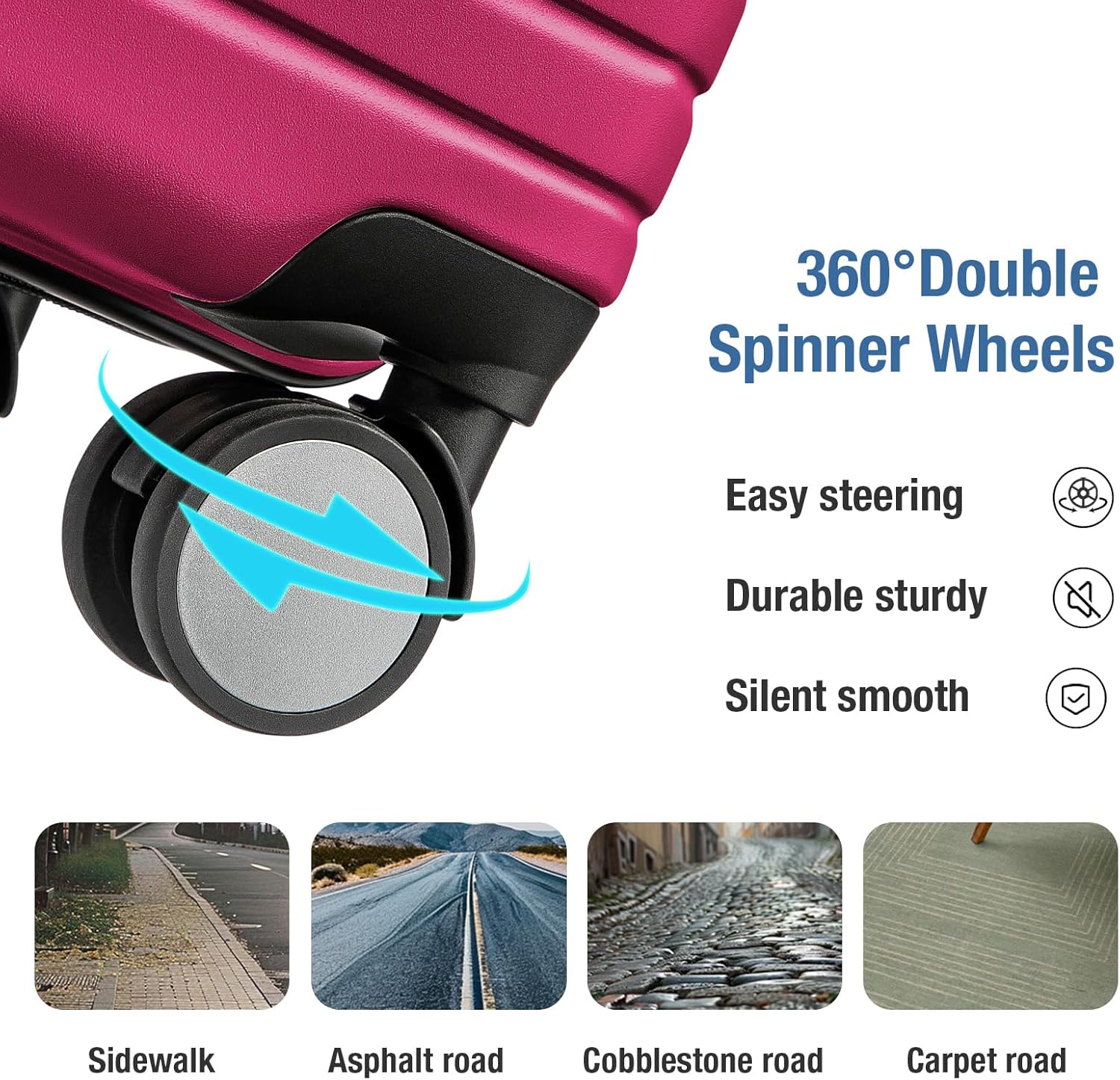 - SPINNER WHEELS LUGGAGE:KYME carry on luggage equiped with double 360°swivel wheels,rolling smoothly over a variety of surfaces.these 20 in small rolling suitcase equiped with a 3-step handle adjustment for different heights.Combination TSA lock and YKK zipper keeps your peace of mind
