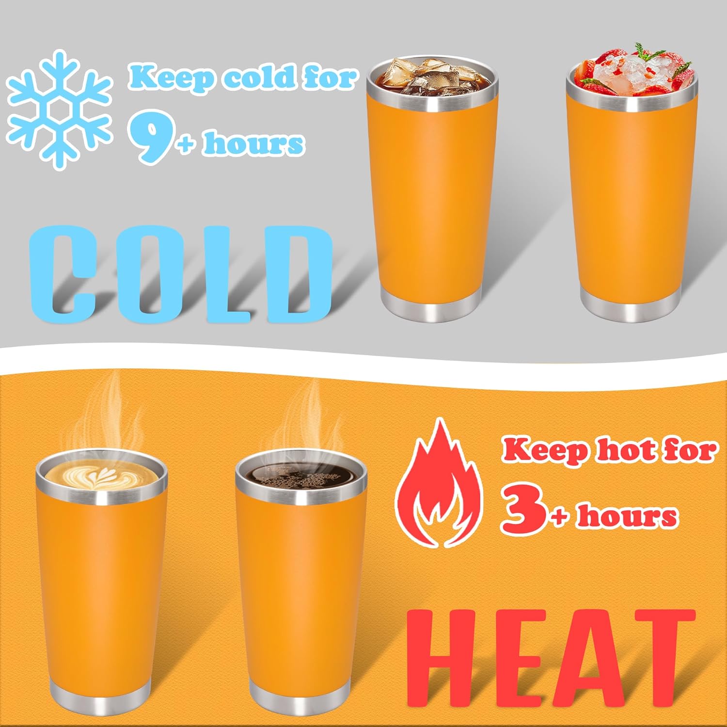 20 oz Tumbler with lid Double Wall Vacuum Insulated Tumblers Stainless Steel Coffee Mug Travel Coffee Tumbler Powder Coated Tumbler Cup Keep Hot&Cold - (Orange 1 Pack)