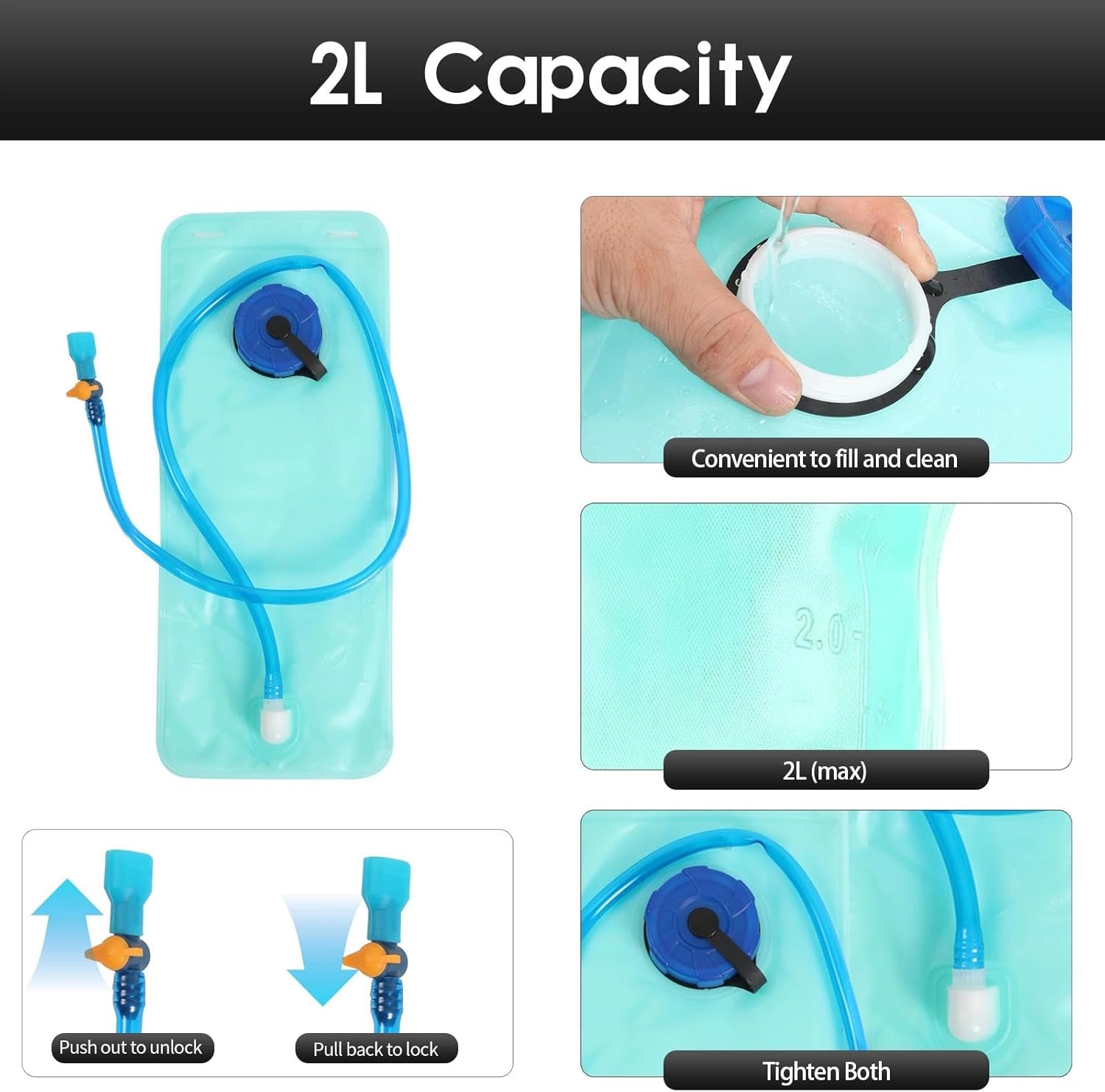 - Leakproof Water Bladder: This hiking backpack comes with a 2L leakproof water bladder, ensuring you can maintain proper hydration while on the go. It's designed to be effortless to fill and clean, making it highly convenient for your outdoor adventures
