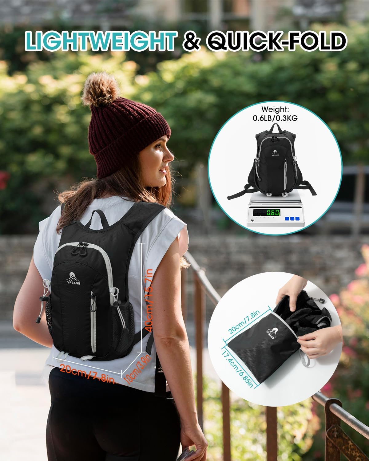 - Lightweight and Pressure-relieving - Weighs only 0.6 LB, this day bag’s ergonomic design lifts up and evenly distributes weight, reducing strain on shoulders and back by 30%, ensuring hikers to traverse challenging terrains with ease