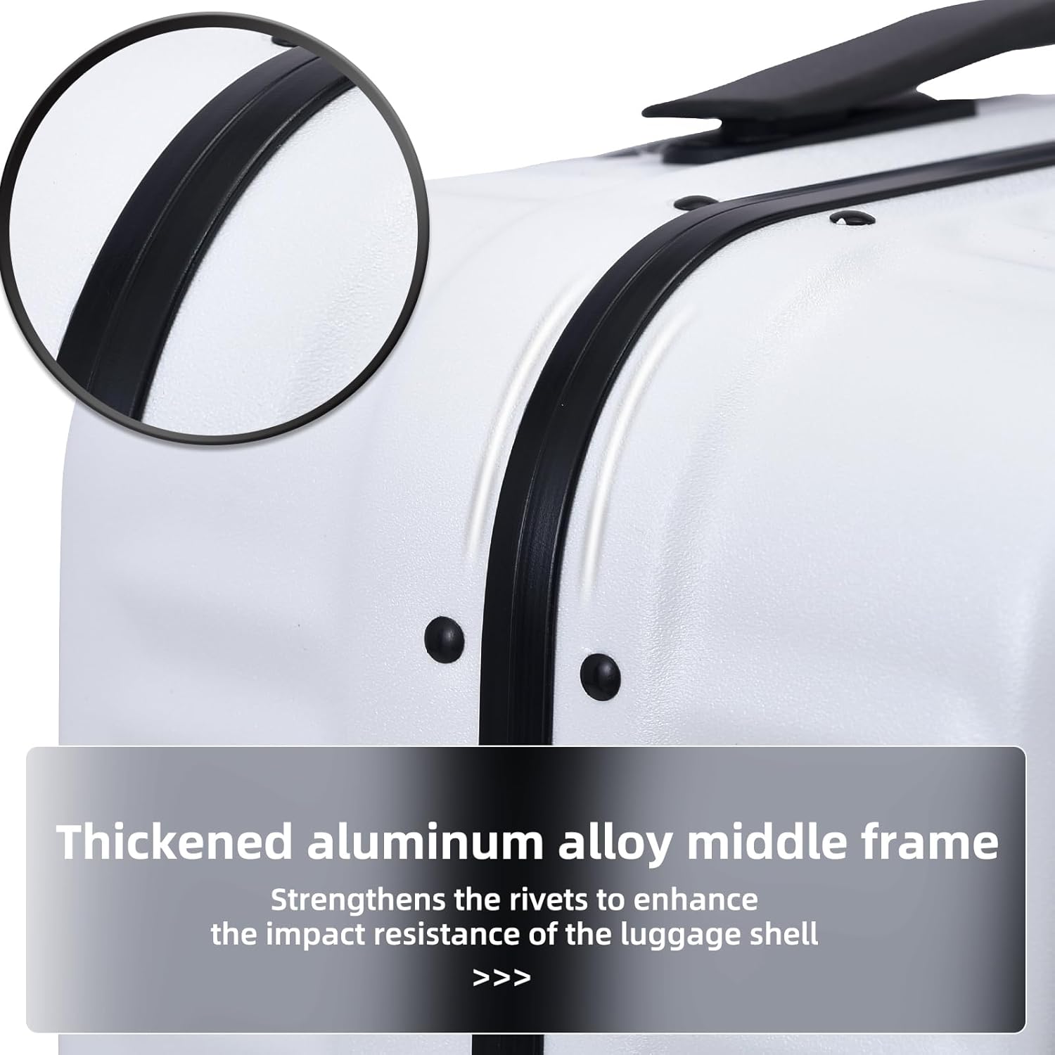 - ABS+PC Hardshell & Aluminum Frame: Made of brand new ABS+PC material, the suitcase is more sturdier and lightweight in daily use. The middle aluminum frame design offers more load bear than other normal luggage. You can even sit on the luggage when you are tired during the trips. If you're ready to take your suitcase game to the next level, it might be time to consider our aluminum suitcase