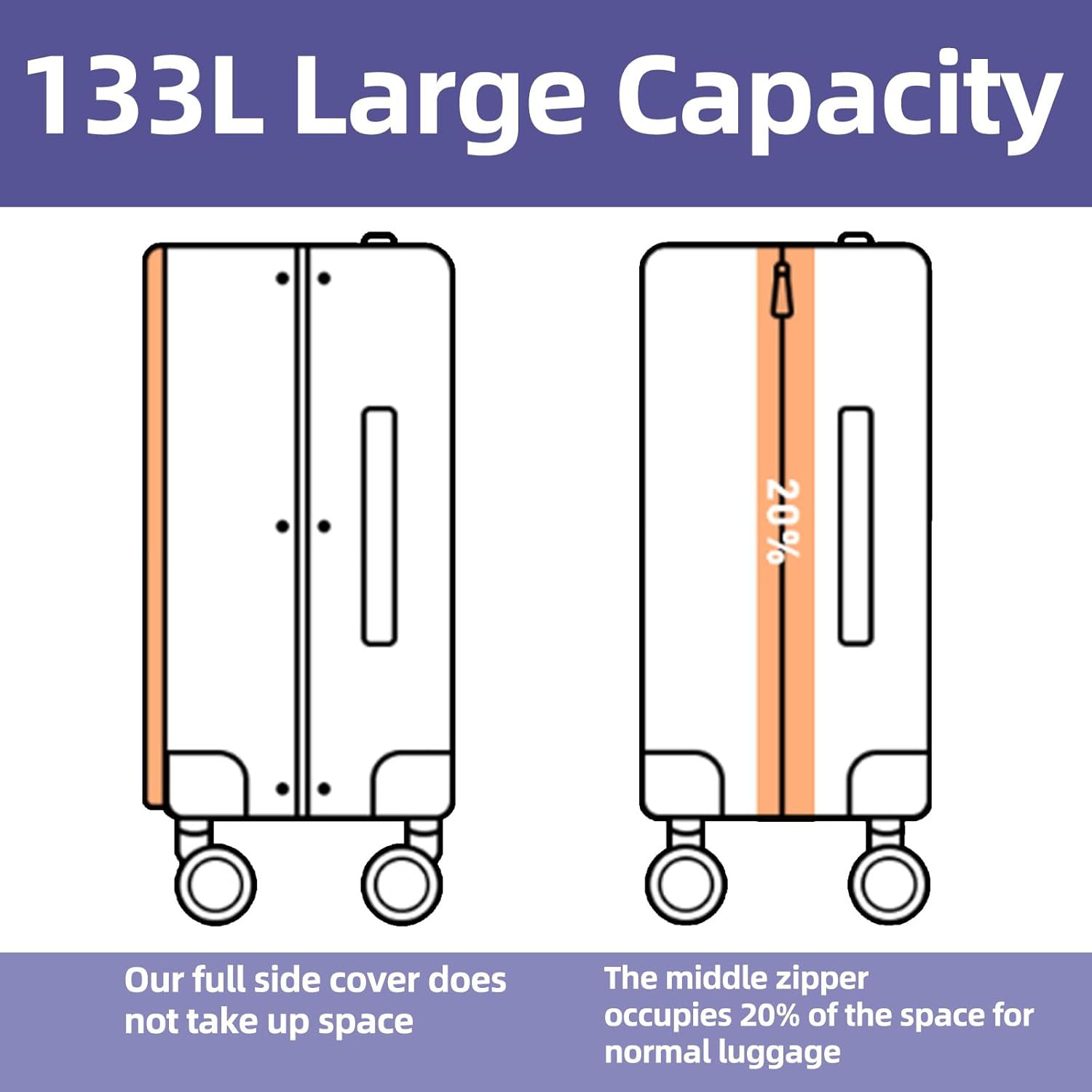 - Large Size & Large Capacity: The 29 inch suitcase designed with the opening side, whcich increase 30% capacity than other same size luggage. Because the full side cover does not take up space, but the other middle zipper occupies 20% of the space for normal luggage. For the 117~133L capacity, you can take it go for a long trip or go abroad study.