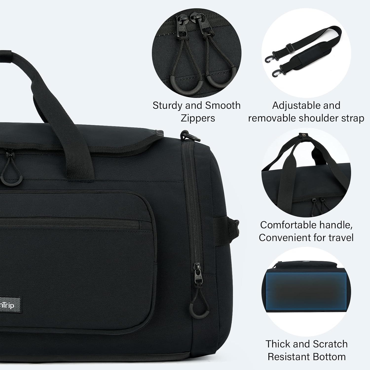 - [Premium Materials] Our travel duffle bags with shoe compartment introduce 600D wate-resistant polyester fabric, rustproof SBS zippers with smooth-glide technology and triple-stitched seams. The reinforced top handle with snap-lock closure secures essentials, while the flip-top flap and thickened base padding protect your valuables from impacts. An ideal weekender bag or overnight bag for women/men.