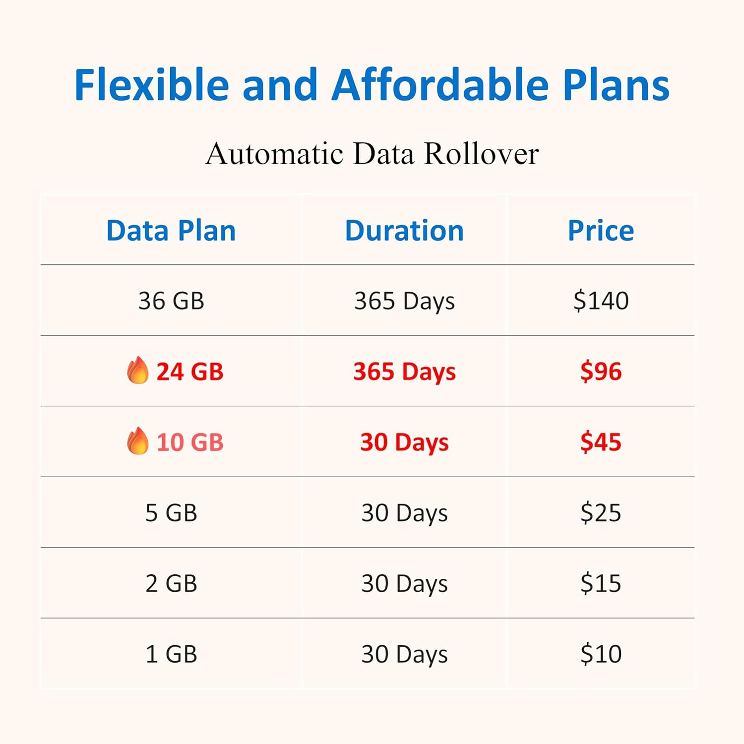 - Wide Network Compatibility – Works reliably with major U.S. carriers including AT&T, T-Mobile, and Verizon for extensive coverage and fast 4G LTE performance. Supports key LTE bands (B2, B4, B7, B12, B13, B28) to deliver strong, stable connectivity. This is a 4G-only device designed for 4G networks. Typical download speeds range from 5–15 Mbps, sufficient for smooth video streaming.