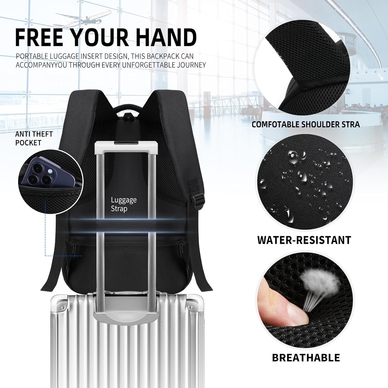 - 【ERGONOMICS & LUGGAGE STRAP】Comfortable airflow back design with thick and soft breathable padding gives you maximum back support. Adjustable "S" shoulder straps relieve the stress of the shoulders,A luggage strap allows mochilas para hombres fit on luggage/suitcase, slide over the luggage upright handle tube for easier carrying. All ergonomic functions ensure comfortable and safe everyday & long-lasting travelling usage.