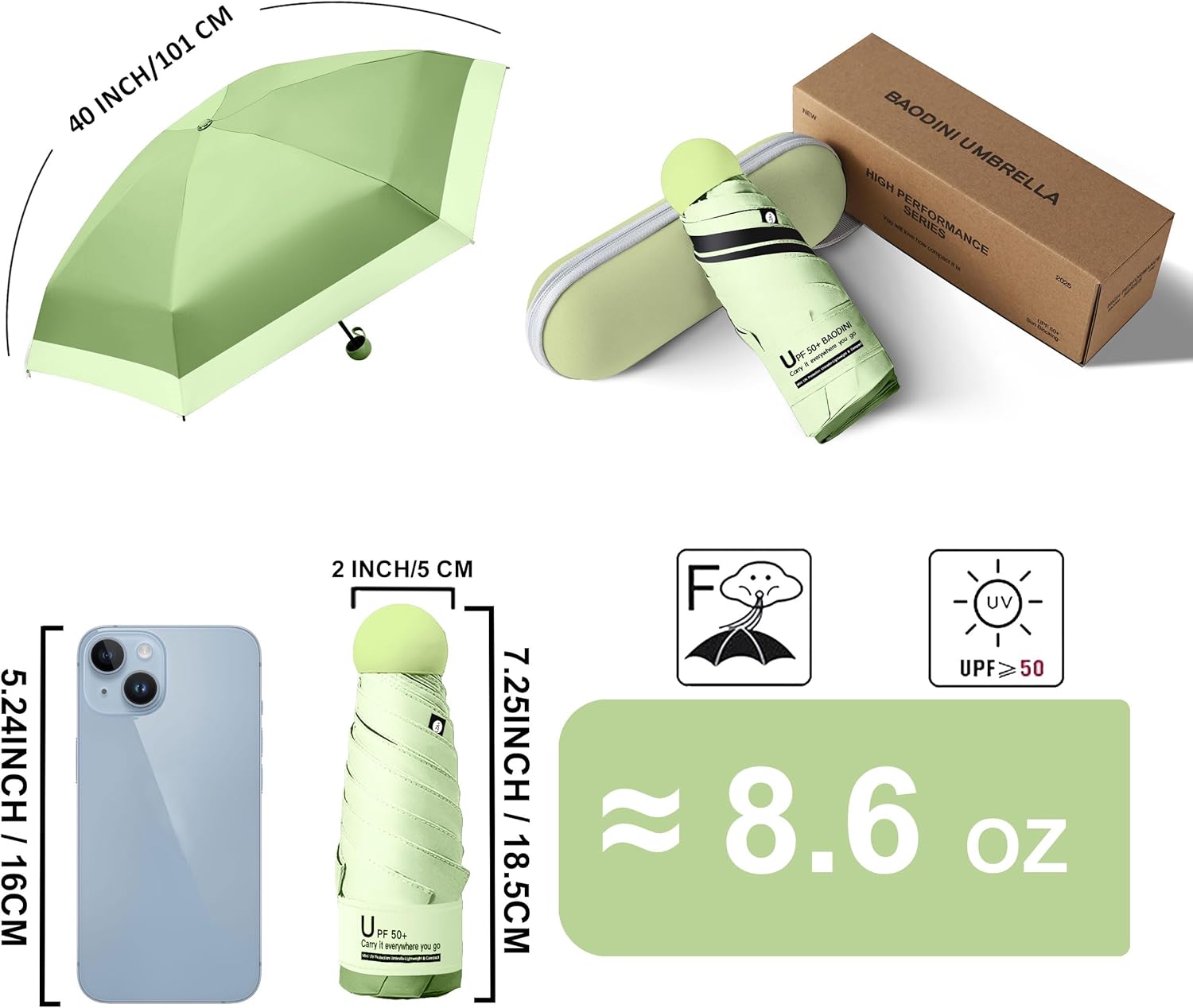 BAODINI Travel Mini Umbrella for Purse With Case Small Compact UV Sun Protection Sun Lightweight Tiny Pocket Umbrella for Women Kids and Men