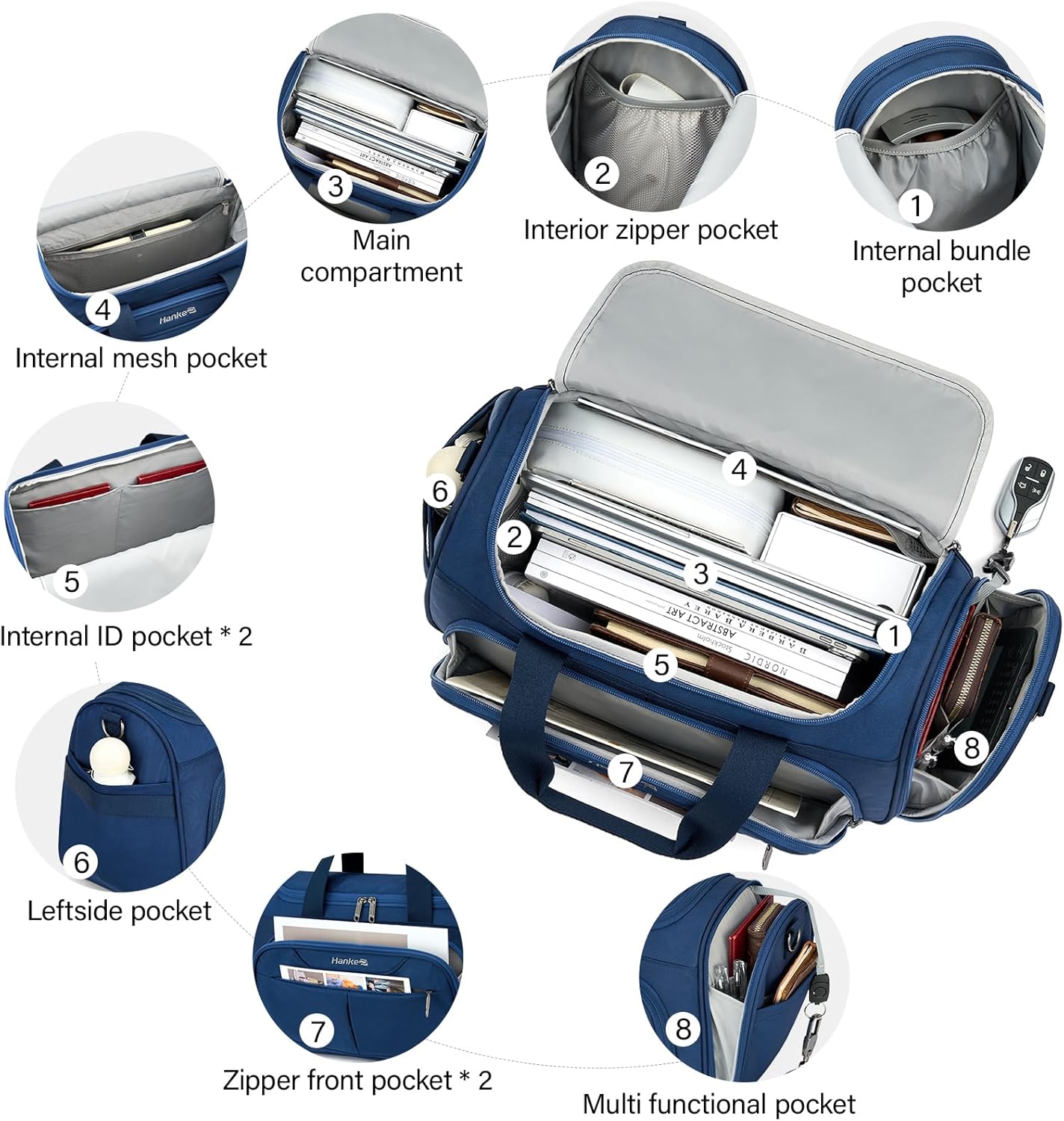 Hanke Underseat Carry On luggage Bags for Travel, Foldable Travel Bags for Women, Soft Lightweight Personal Item Travel Bag Small Carry On Bags for Airplanes, Travel Tote Bags for Women Men.(Blue)