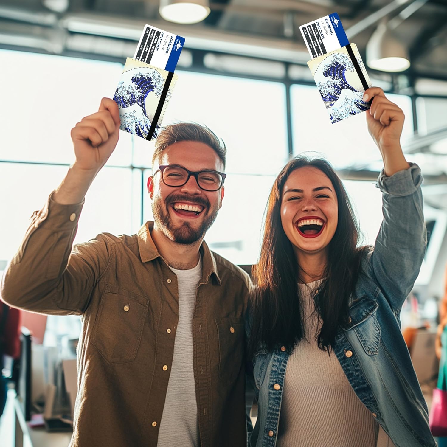 Ink Waves Passport Holder for Women and Men PU Leather Passport Cover for Travel