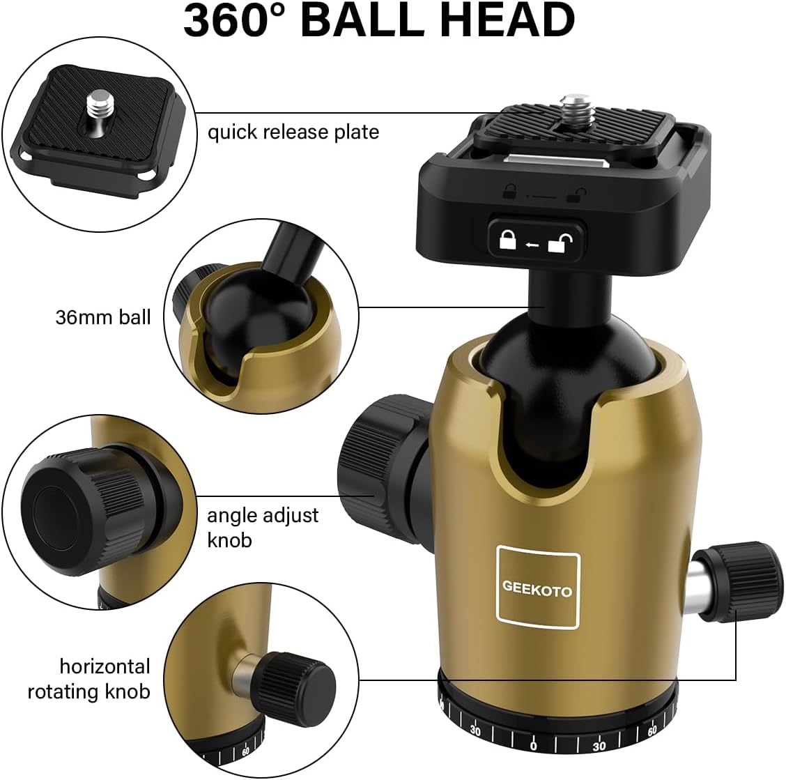Geekoto 73-Inch Camera Tripod - Lightweight DSLR Tripod with 360° Ball Head & Quick Release Plate, Supports Up to 33.07 lbs, Portable for Travel & Outdoor Photography