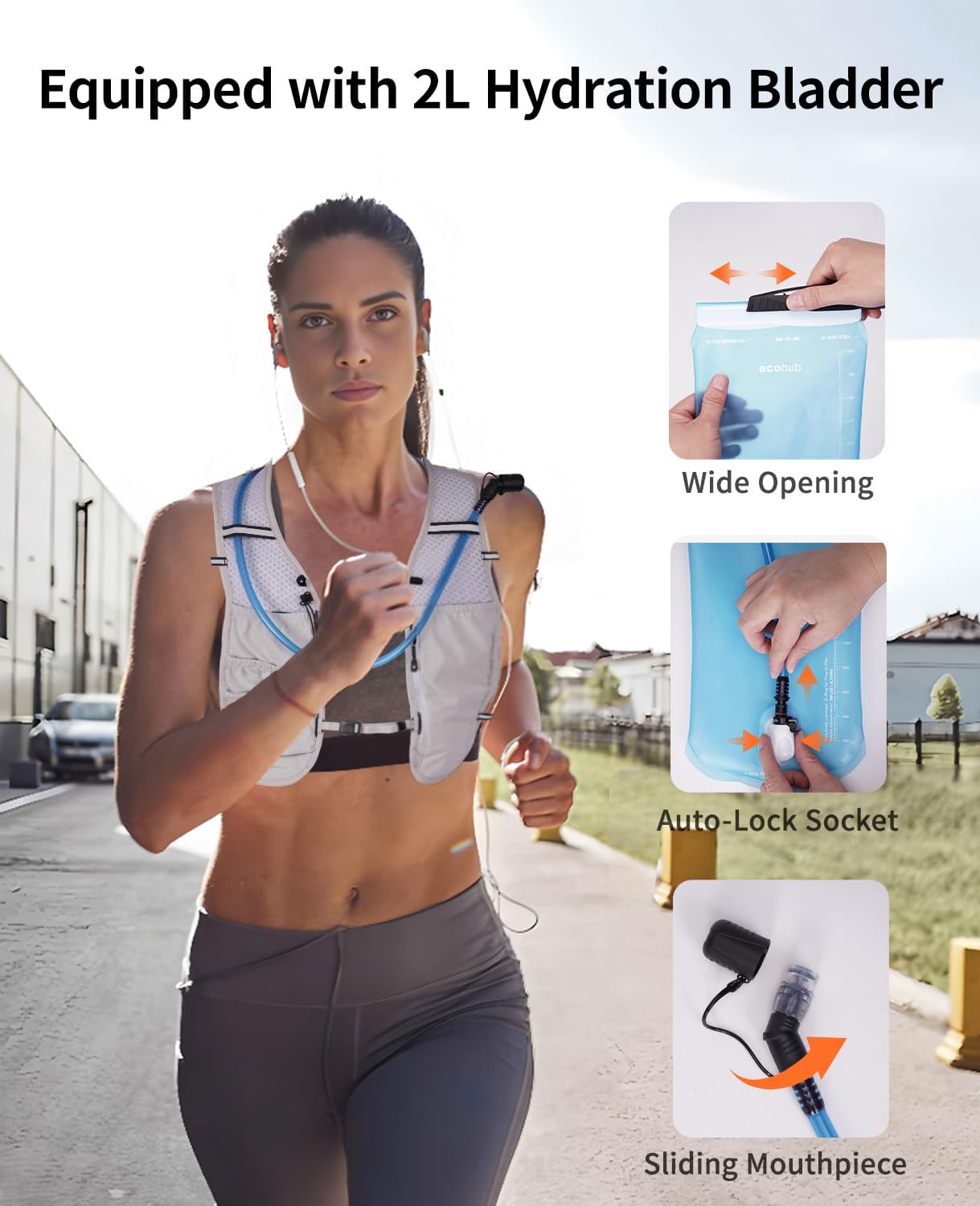 ECOHUB Running Hydration Vest Backpack,Lightweight Breathable Pack with 2L Water Bladder Bag Daypack for Hiking Trail Running Cycling Race Marathon for Women Men