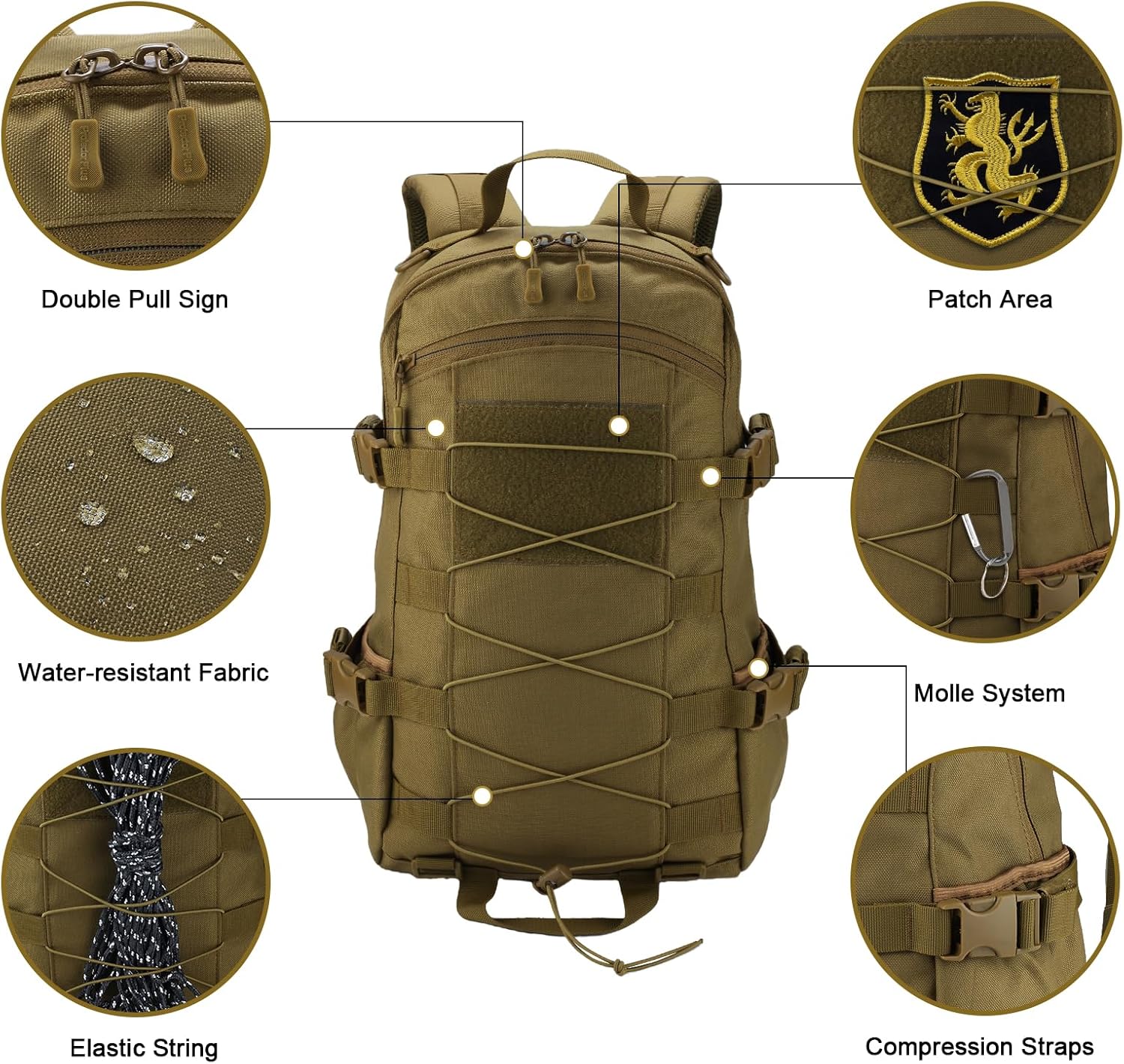 25L Hiking Backpack Small Tactical Backpack Daypack Camping Trekking Hunting Molle Pack for Men Women, Khaki