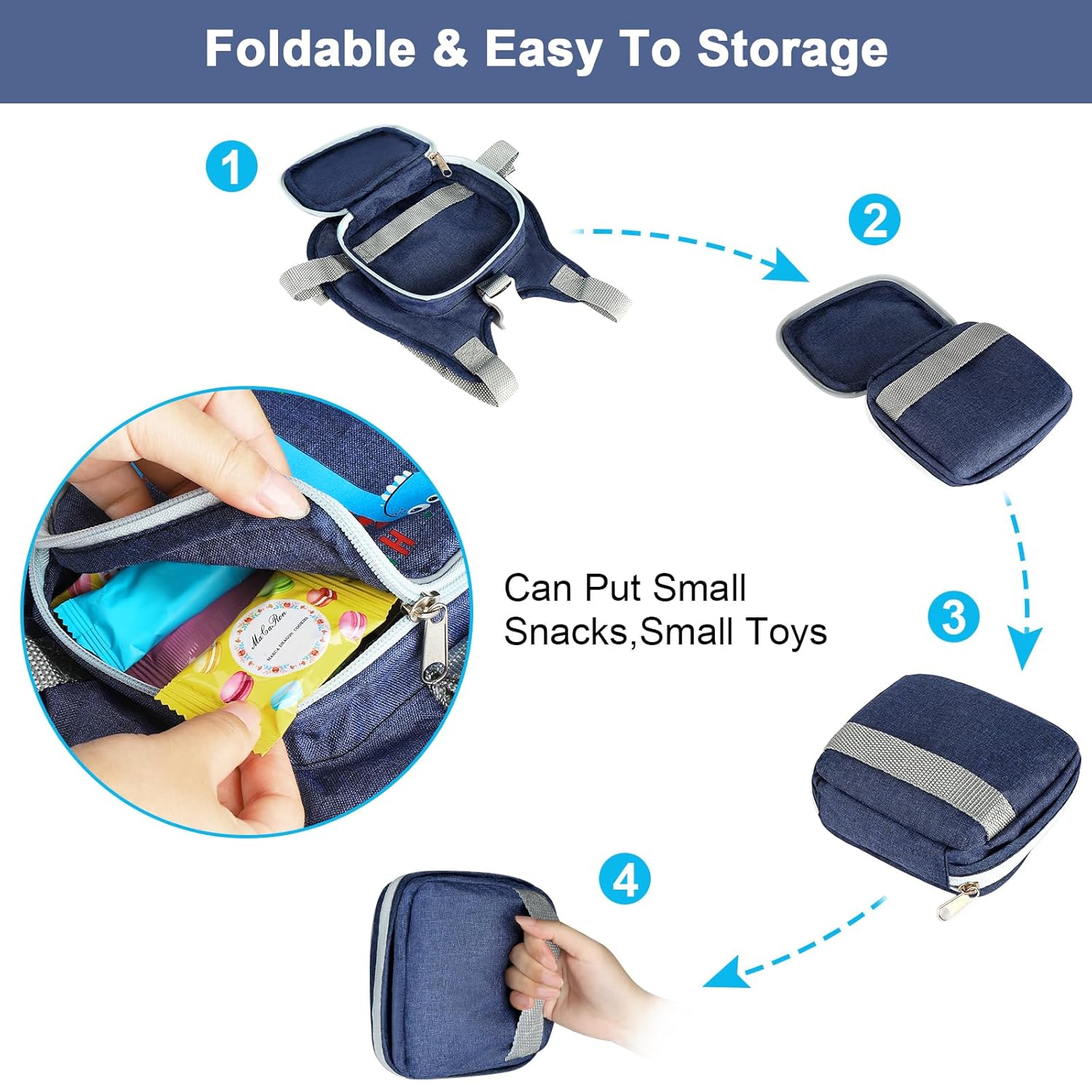 - Foldable & Reflective: There is a small pocket on the back of the harness, you can fold it when you don’t need it, which is very convenient to carry. The wrist link and tether are reflective, making it secure for children to go out at night