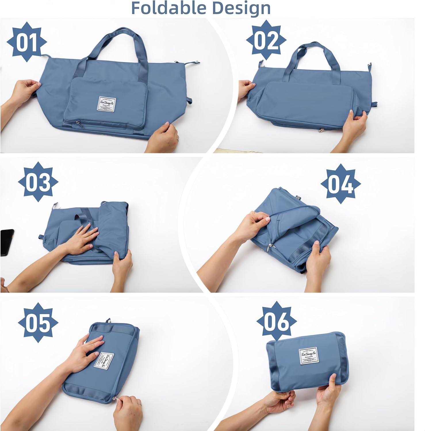 Large Capacity Foldable Travel Bag, Expandable lightweight Carry on Bag, Dry with Wet Separation Spor Duffel Bags