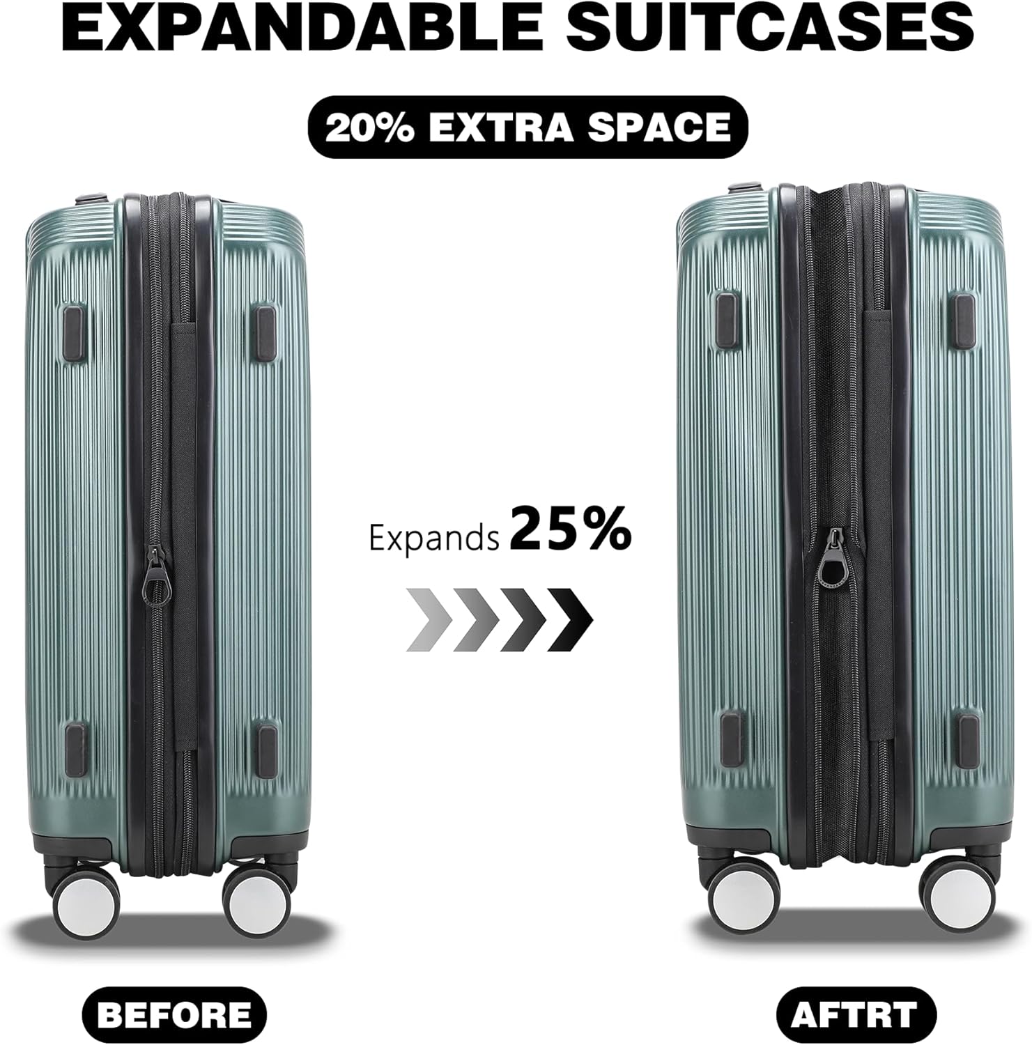 Luggage Sets 2 Piece, 20/28 Inch Lightweight Expandable PC Hardside Durable Suitcases with Spinner Wheels & TSA Lock, Green