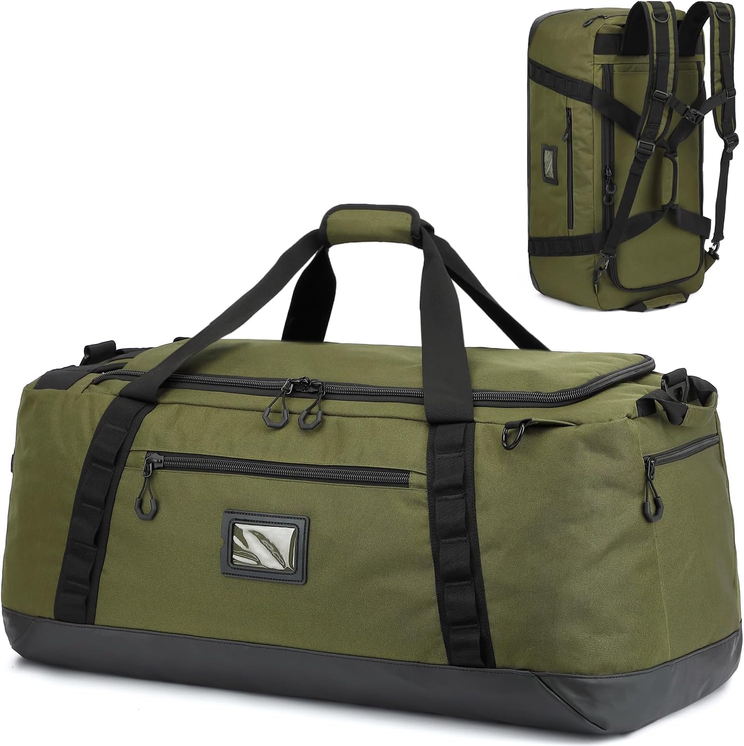 TUGUAN Extra Large Travel Duffle Bag Backpack for Men with Adjustable Dividers 120L Big Weekend Overnight Bag with ID Pocket Shoulder Strap Heavy Duty Sports Duffel Bags for Camping Gym, Green