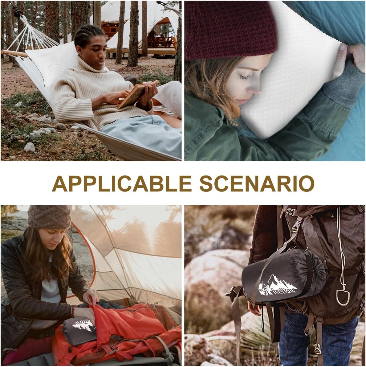 - 【Memory Foam Travel Pillow】Our premium travel camping pillow is fully adaptable to all kinds of trips, like camping, fishing, backpacking, hiking, beach, festival, or other outdoor activities. Whether you're sleeping on a hammock, a plane, a beach, in a car, RV, or under a tent, hotel for a "Power Nap" in the office or on the couch, our travel pillow will give you a great night's sleep wherever you lay your head.