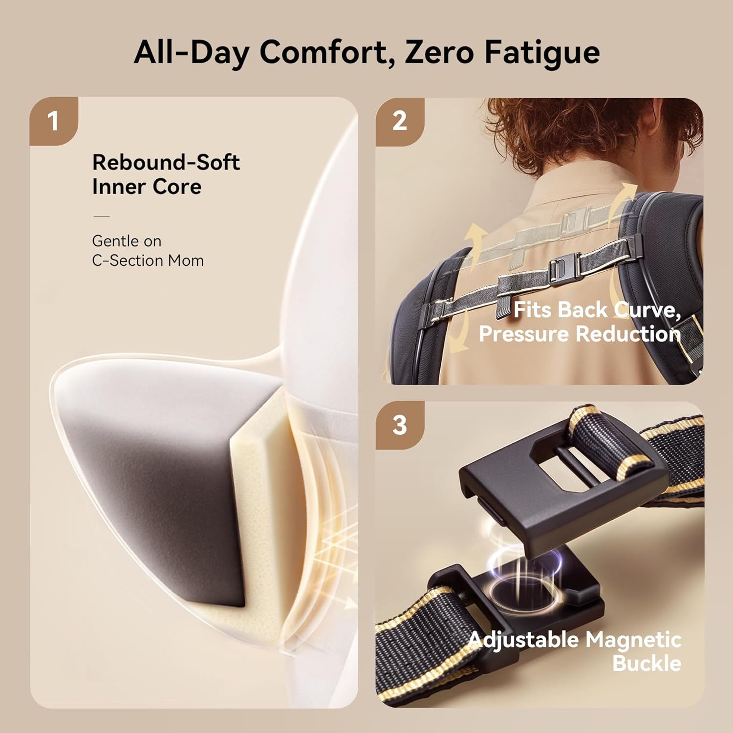 - C-section Friendly Design: Specifically engineered with 3D L-shaped abdominal support and an extra-wide padded 5.5" waistband to gently relieve pressure for C-section recovery. Distributes the baby's weight evenly to reduce strain on the parents' backs and shoulders