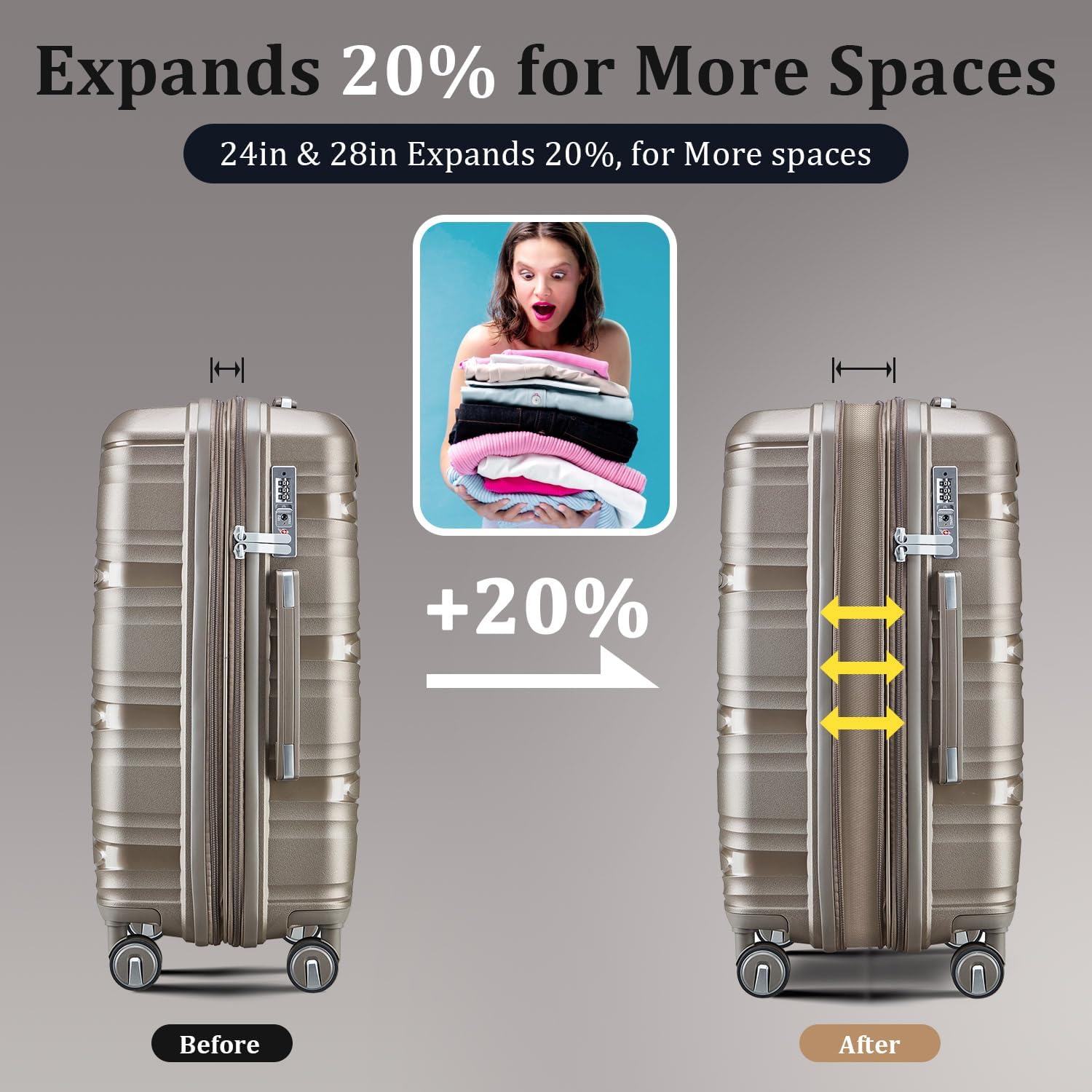 Luggage Set 4 Piece with Spinner Wheel, TSA Approved Expandable Hardshell Suitcase, Lightweight Travel Family Set for Men and Women(Champagne)