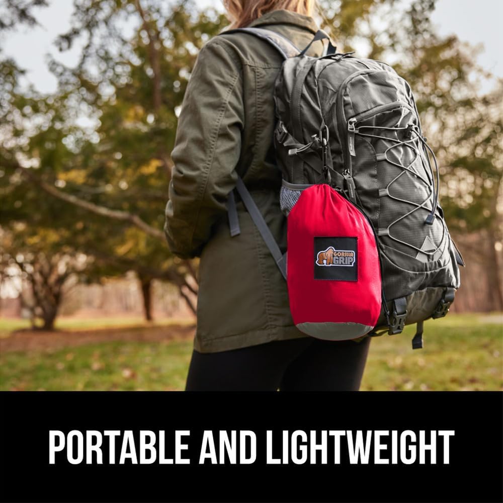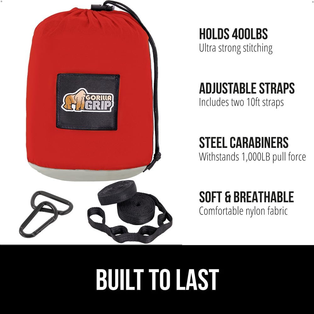 GORILLA GRIP Durable Portable Camping Hammock, Holds 400lbs with Heavy Duty Tree Straps, Comfortable Travel Swing, Camp Hammocks, Easy to Use and Install, Outdoor Essentials, Red, 9x4.5 FT