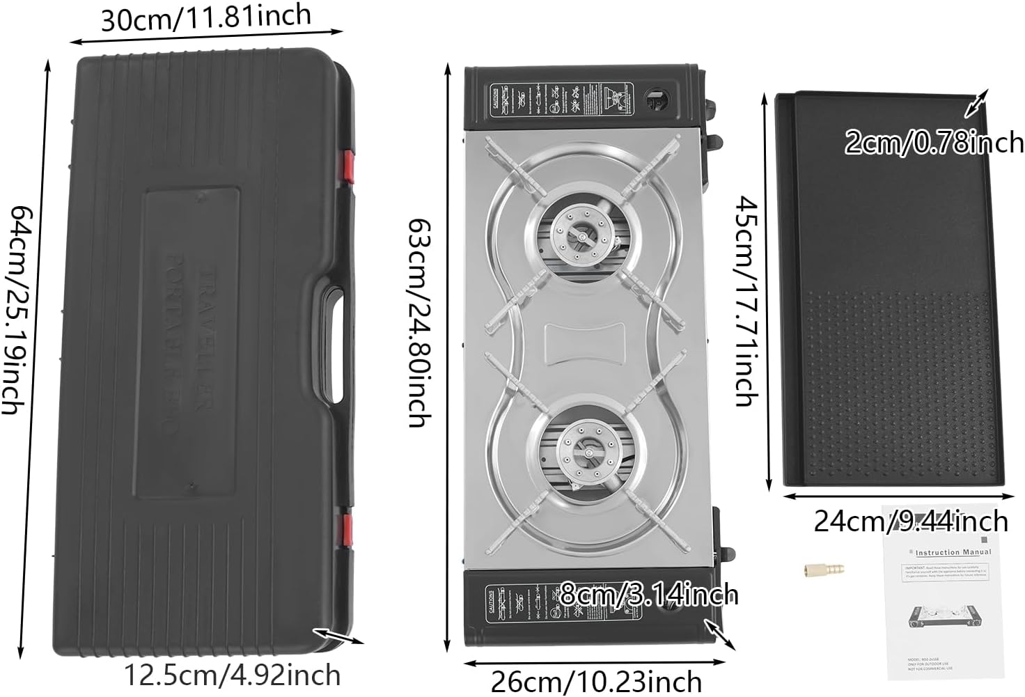 - Efficient Cooking: 2100-2500W high power, two burners, and low gas consumption (0.22lbs/h) can provide continuous flames while saving energy, allowing you to cook quickly. Circular surround fire makes food more evenly heated and more delicious.
