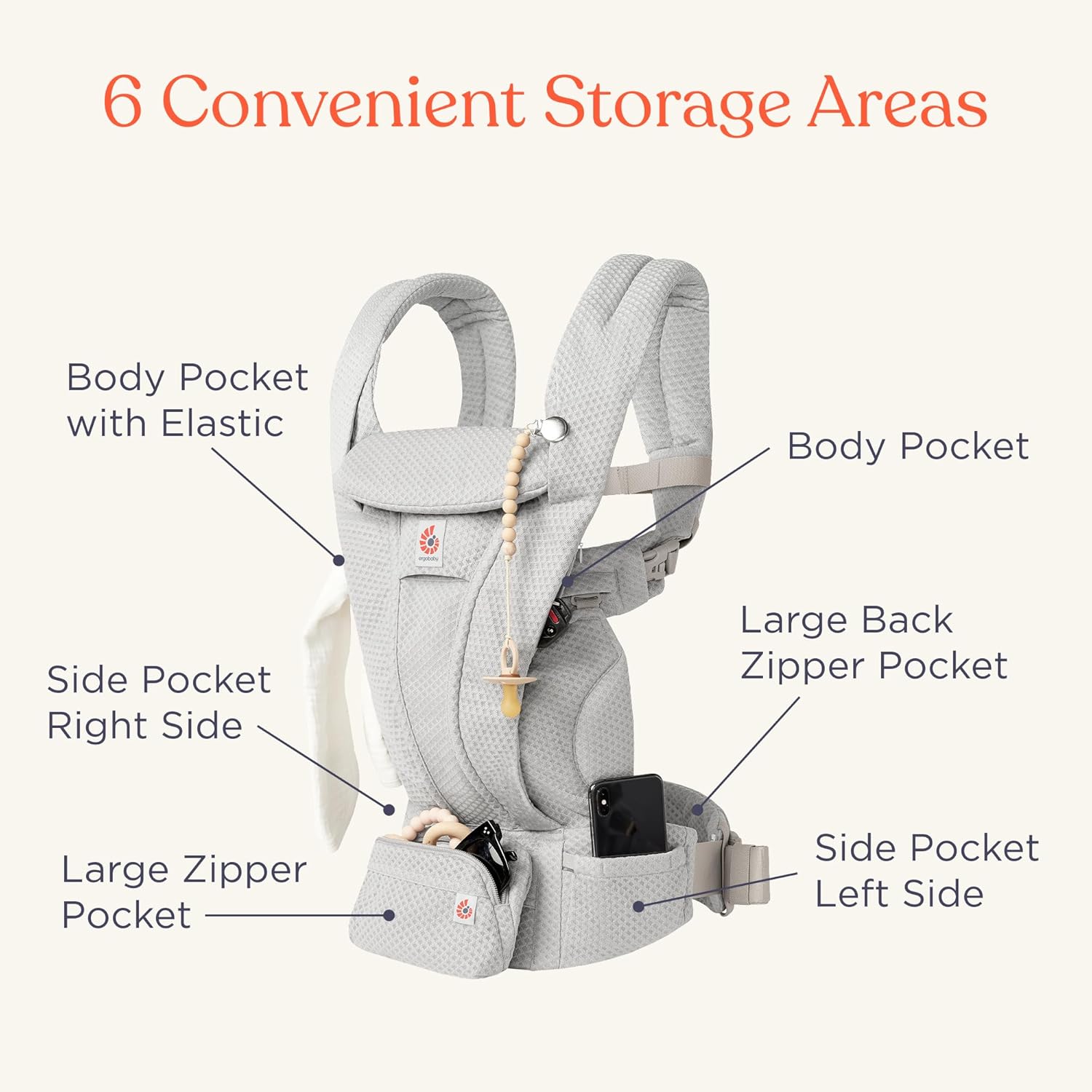 - ALL-IN-ONE STORAGE SOLUTION - Designed for busy parents on the go, this baby holder carrier includes six built-in storage areas, so essentials like your phone, wallet, and keys are always within easy reach. Intuitive strap indicators make switching between wearers fast and seamless.