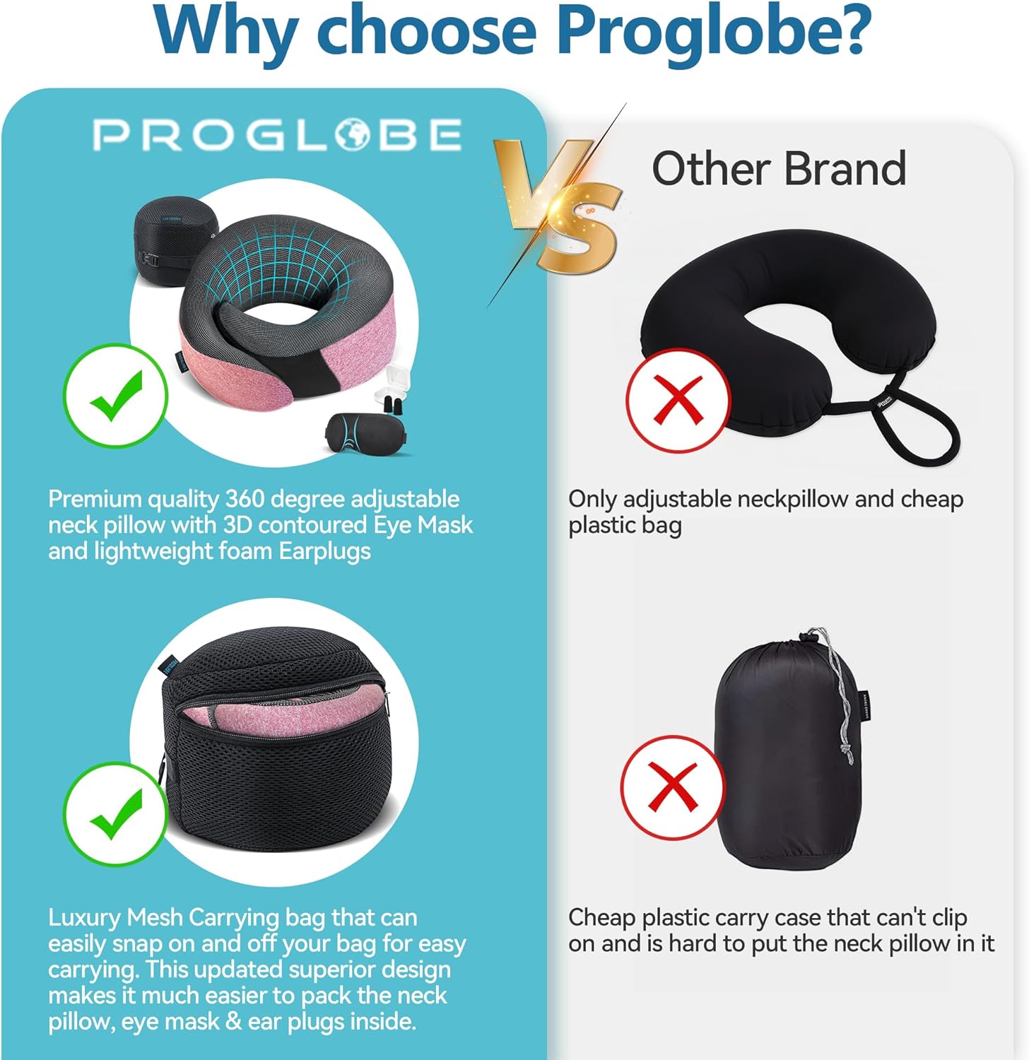 - Special extra accessoires - including a high-end mesh carry bag for your neck pillow, memory foam contoured sleeping eye mask and comfortable ear plugs to block out light and sound. This optimal kit makes you ready for international flights in comfort with maximum convenience.