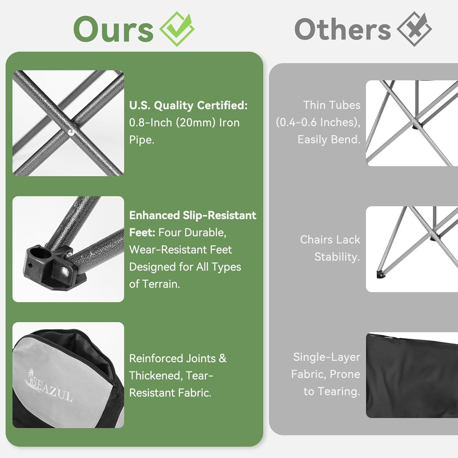 - 🌳 【Premium Quality You Can Trust】 Built Under Strict Quality Control, Our Chairs Feature Upgraded Materials And Reinforced Construction For Lasting Durability. Tested To International Impact Standards, They Provide Reliable Safety And Strength For Every Outdoor Adventure.