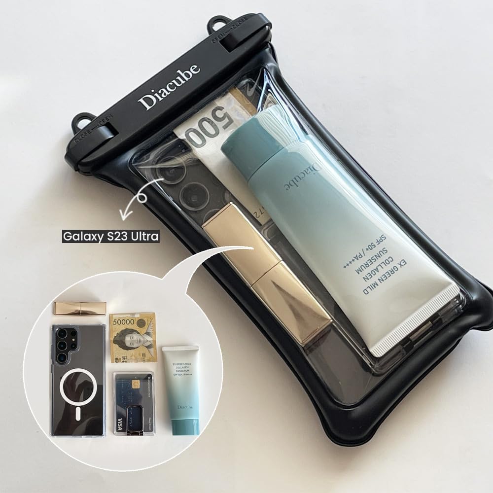 - 【ULTIMATE IPX8 CERTIFIED WATERPROOF DEFENSE】DIACUBE's advanced three-layer lock-down technology provides reliable IPX8 waterproofing, safeguarding your phone from water, snow, dust, and sand. Keep important items like passports, bank cards, cruise cards, cash, IDs, and your phone safe and dry inside this waterproof pouch.