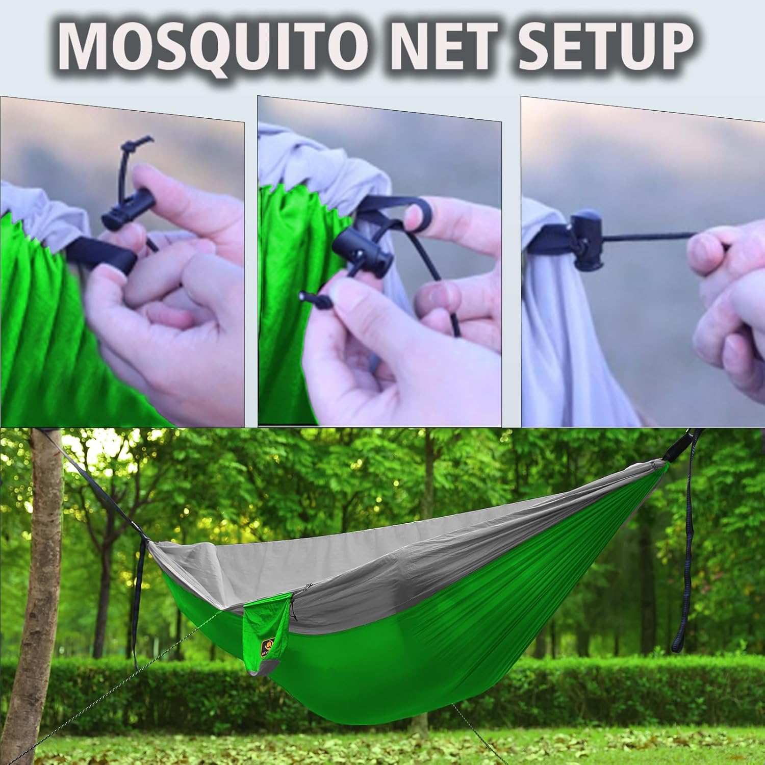 Camping Hammock, Portable Hammocks with Mosquito Net,Lightweight Nylon Parachute Hammock with 10ft Tree Straps,Camping Gear Must Haves for Travel Hiking Backpacking Beach Patio