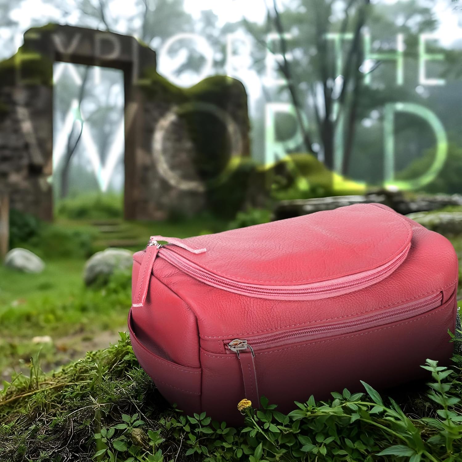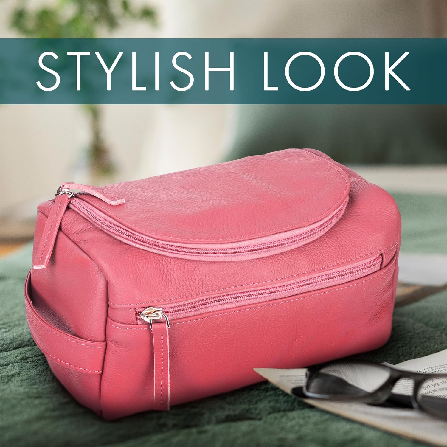 ELIZO Premium REAL Leather Toiletry Bag for Men Dopp Kitt Hanging Mens Toiletry Large TSA Toiletries Bag Shaving Grooming Bag Organizer Espresso (Pink, Large)