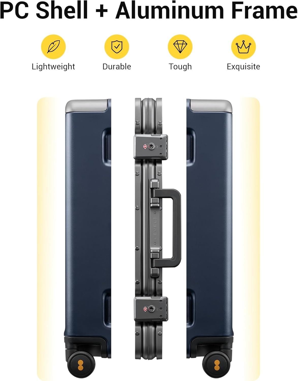 - Polycarbonate Luggage with Aluminum Frame: Made from high-quality polycarbonate material with an aluminum frame, this carry on luggage is lightweight yet remarkably strong. It can withstand the rigors of travel while keeping your belongings and secure