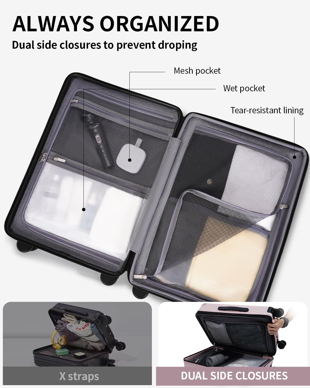 - 【Dual Full-Closure Compartments】: Two fully enclosed compartments with zippered closures prevent shifting, keeping your belongings secure and wrinkle-free during travel. Includes a wet zippered pocket and mesh pocket for flexible storage, ensuring organized packing. Plus, a TSA-approved lock allows airport security inspections without damage, ensuring peace of mind and hassle-free travel.