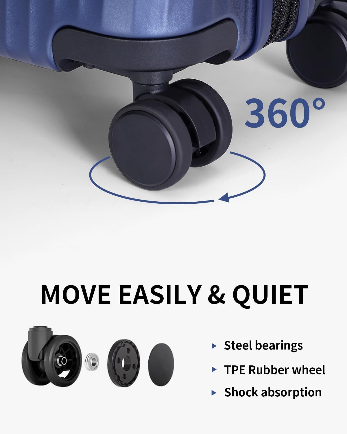 - 【Light & 400%+ Impact-Resistant】: Our carry-on luggage features Bayer polycarbonate for superior durability, resisting cracks and deformations. 4 aluminum alloy corner protectors handle impacts and drops during transport, while the reinforced 4-stage aluminum telescopic handle is lightweight, corrosion-resistant, and robust. Travel with confidence—enjoy your journey, and we’ll deliver the quality. (PATENT PENDING)