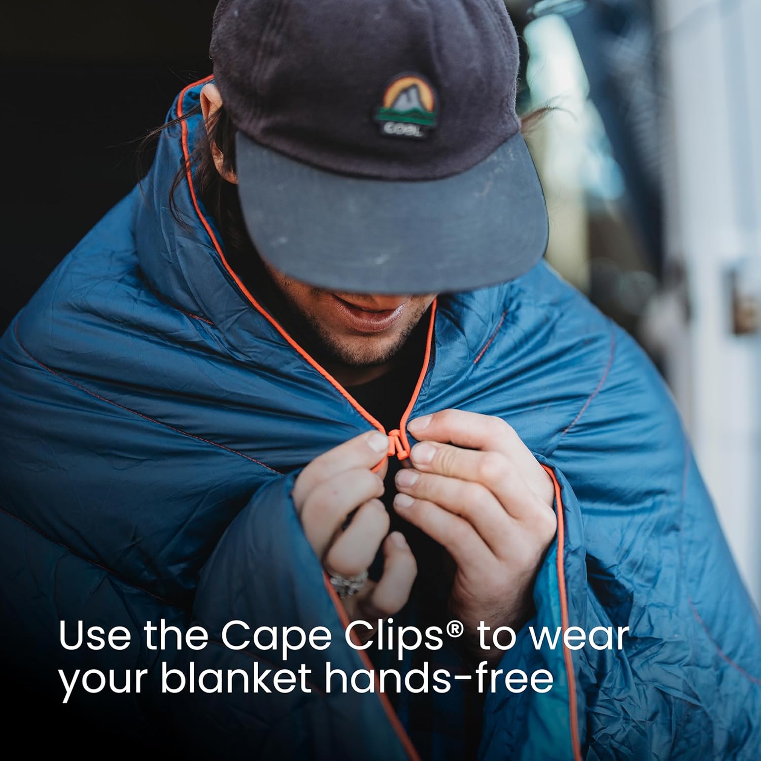 - Features a hands-free Cape Clip for wearable warmth and paracord corner staking loops for securing the blanket to the ground or integrating with the Everywhere Mat for the ultimate outdoor lounging experience