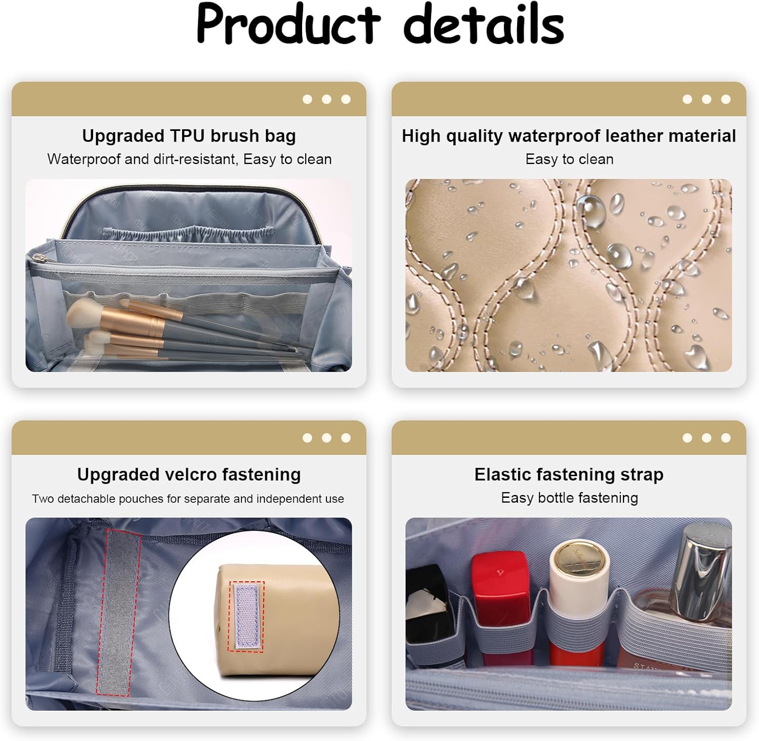 - Multifunctional Travel Makeup Bag with Compartments: This leather waterproof cosmetic bag is perfect for any setting - whether on your dresser, in the bathroom, outdoors, in the car, on the train, or packed in your luggage. With multiple compartments, it keeps your makeup organized and easily accessible, so you can meet your beauty needs anytime, anywhere.