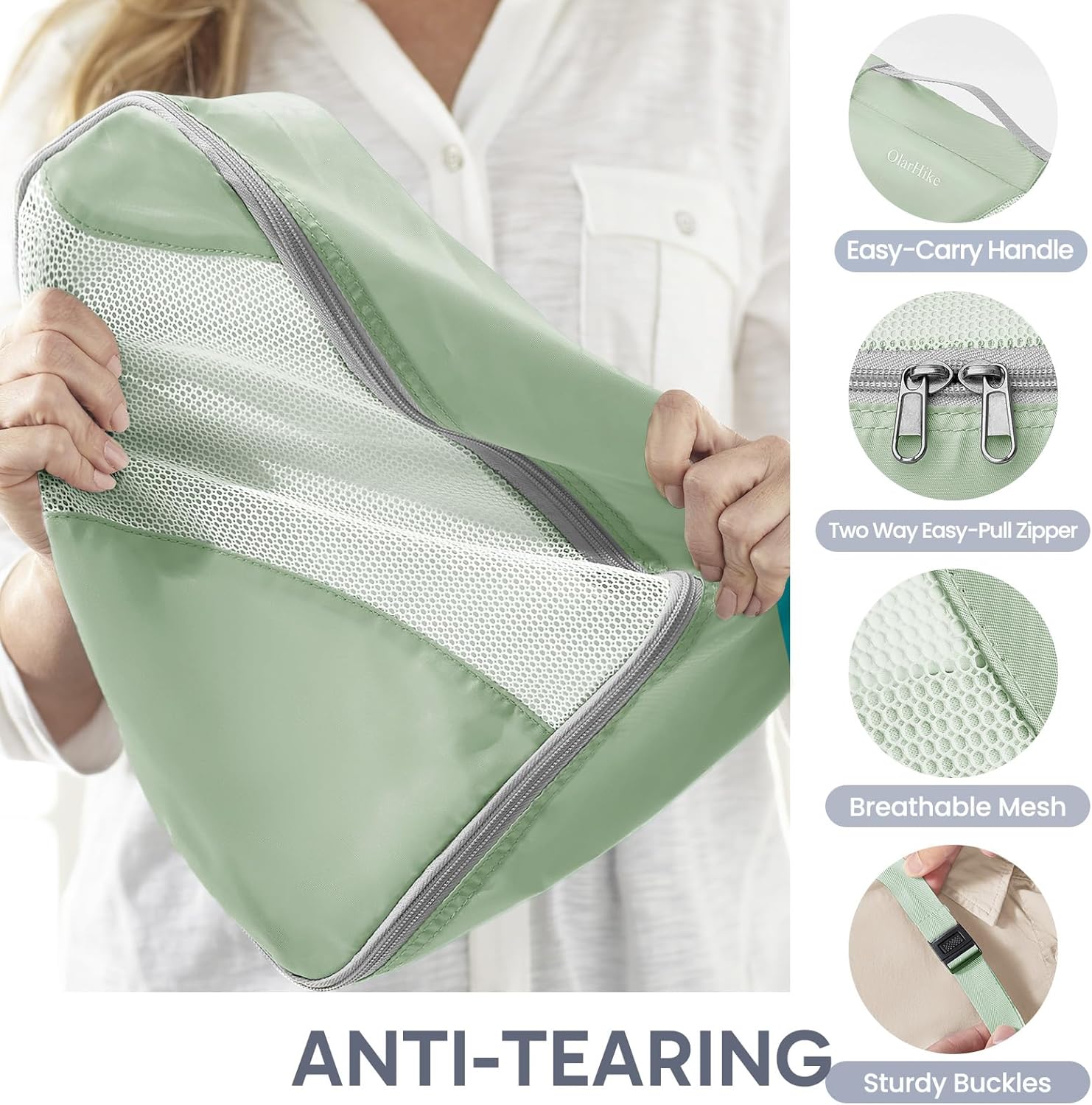 ALL INCLUDED 10 Set Durable Packing Cubes for Suitcases,OlarHike Essentials for Travel,UPGRADED Anti-Tear Stitching, NEW Improved Luggage Packing Organizers for Travel Accessories, Matcha Green