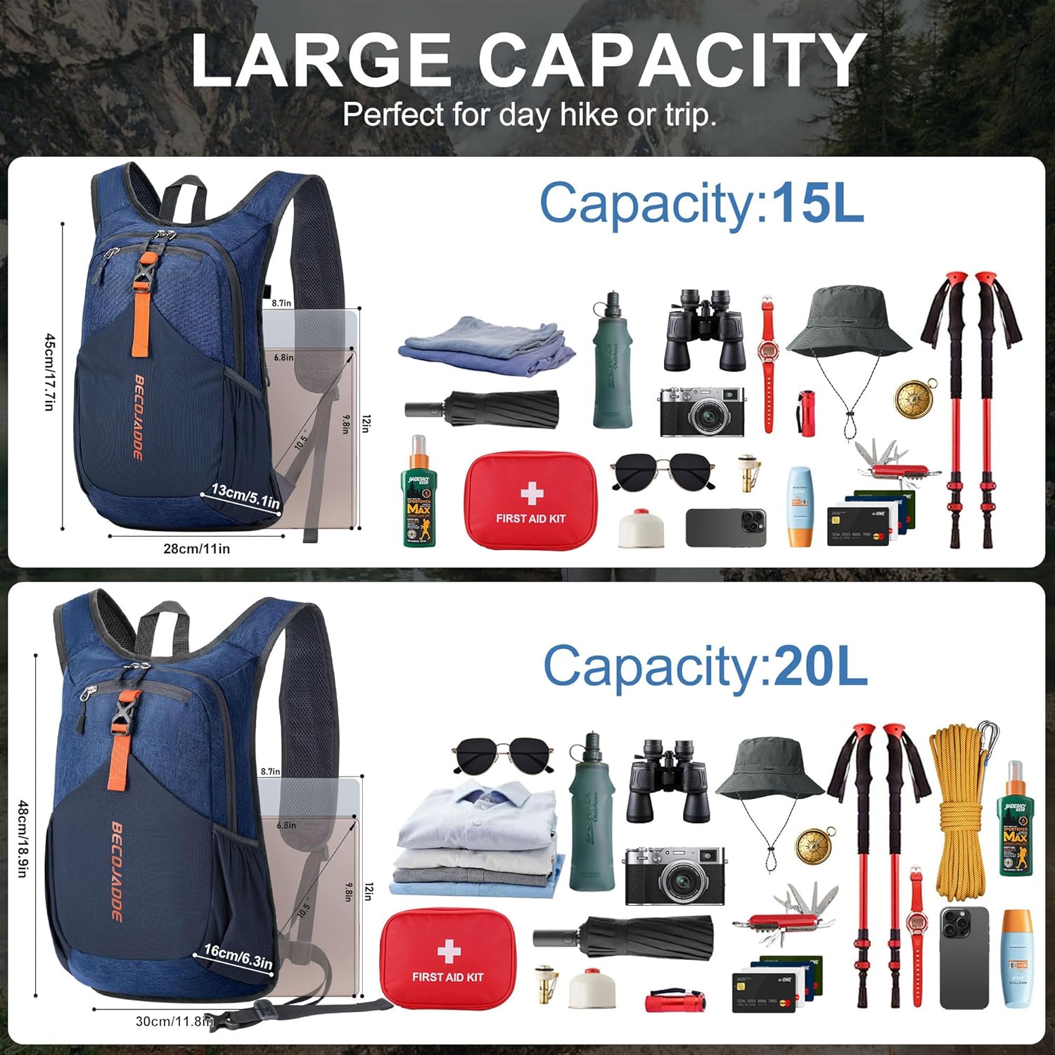 20L Small Hiking Backpack for Men Women Foldable Packable Back Pack Ultralight Hiking Daypack for Travel Camping Outdoor, Navy Blue