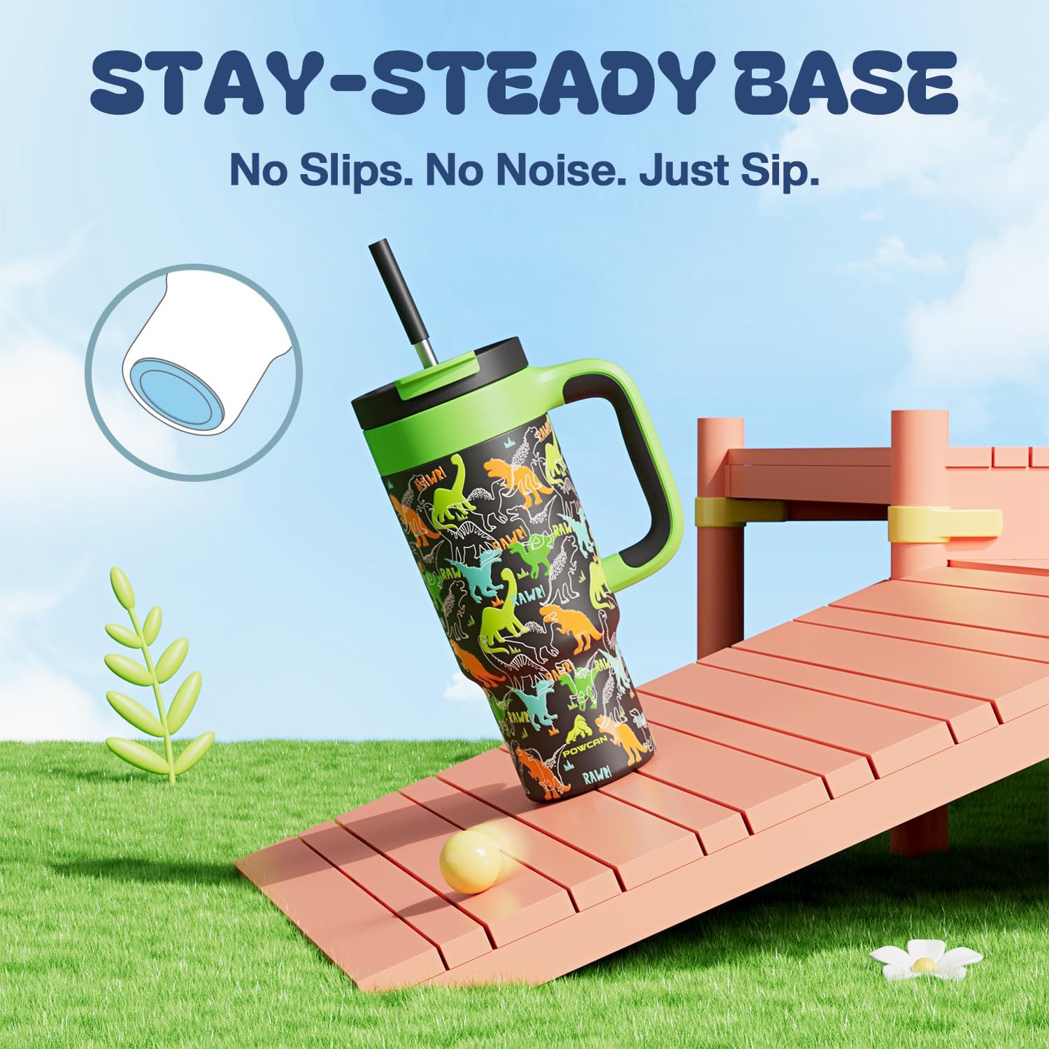24 oz Kids Tumbler with Straw for Boys: Leakproof, Cold for 26 Hrs, Hot for 10 Hrs, Durable Handle, Insulated Stainless Steel Cup for Daycare, School, Classroom, Playtime, Birthday, Gift (Dino Rawr)