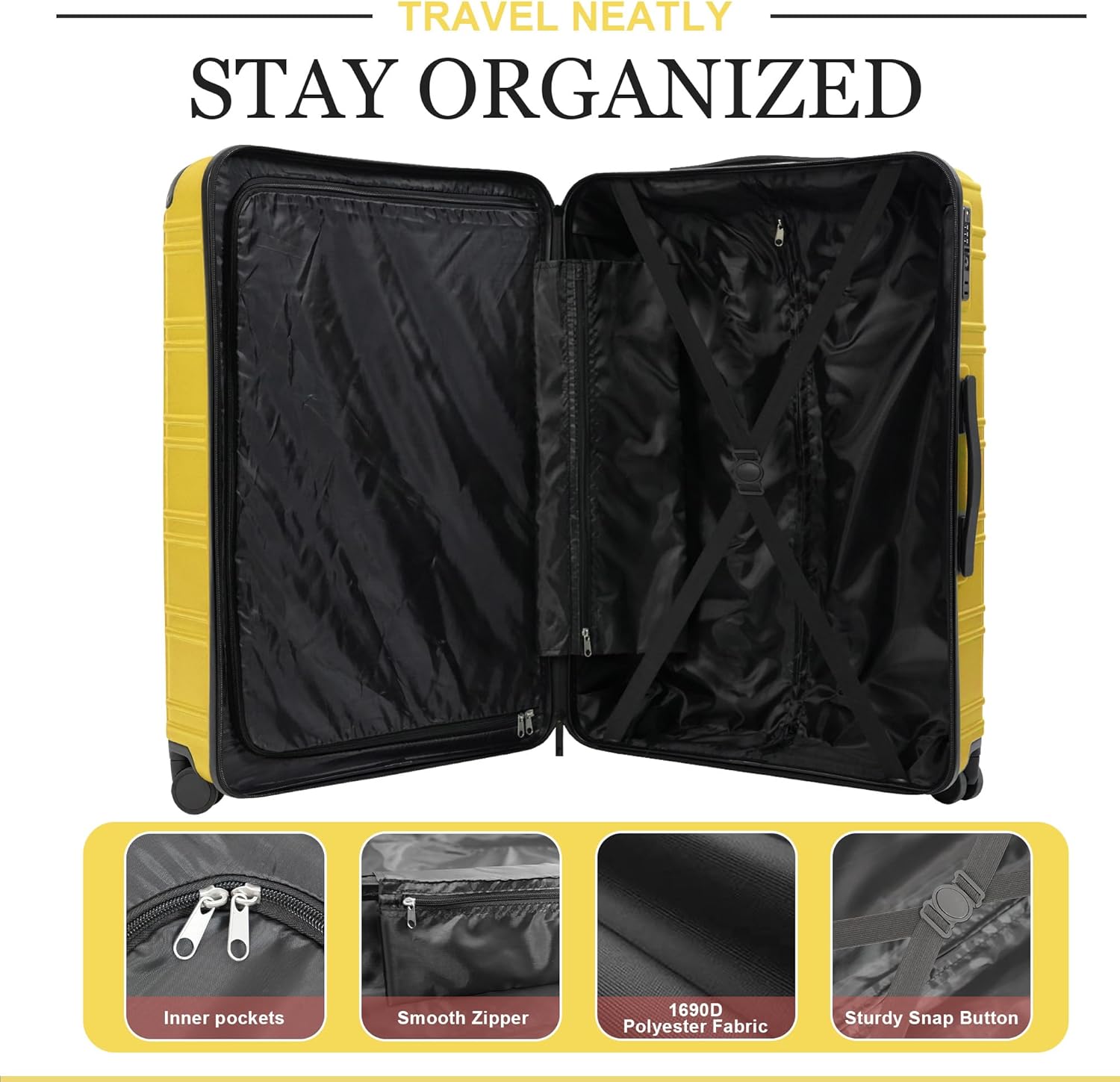 Luggage Sets 4 Piece, ABS PC Lightweight Suitcases with Wheels, Hardshell Luggage Sets Suitcase set with TSA Lock Yellow (12in 20in 24in 28in)