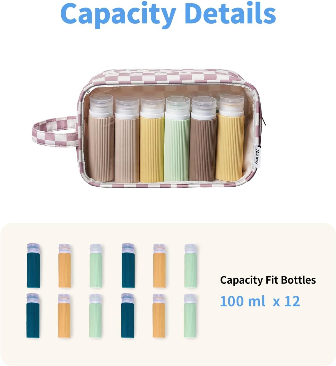 Narwey Clear Toiletry Bags for Traveling Women Men, Clear Travel Bags for Toiletries Makeup Bag Cosmetic Bag with Zipper, Make Up Organizer, Skincare Bag (Dusty Pink Checkerboard)