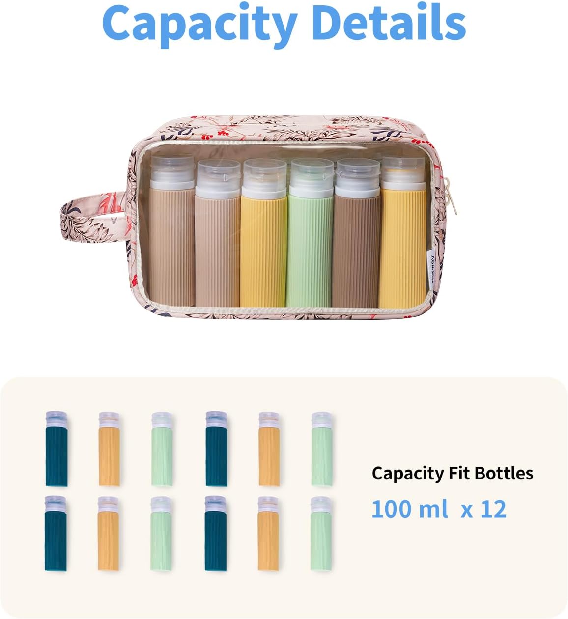 Narwey Clear Toiletry Bags for Traveling Women Men, Clear Travel Bags for Toiletries Makeup Bag Cosmetic Bag with Zipper, Make Up Organizer, Skincare Bag (Beige Flamingo)