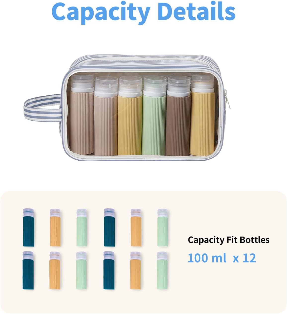 Narwey Clear Toiletry Bags for Traveling Women Men, Clear Travel Bags for Toiletries Makeup Bag Cosmetic Bag with Zipper, Make Up Organizer, Skincare Bag (Greyish Blue Stripe)