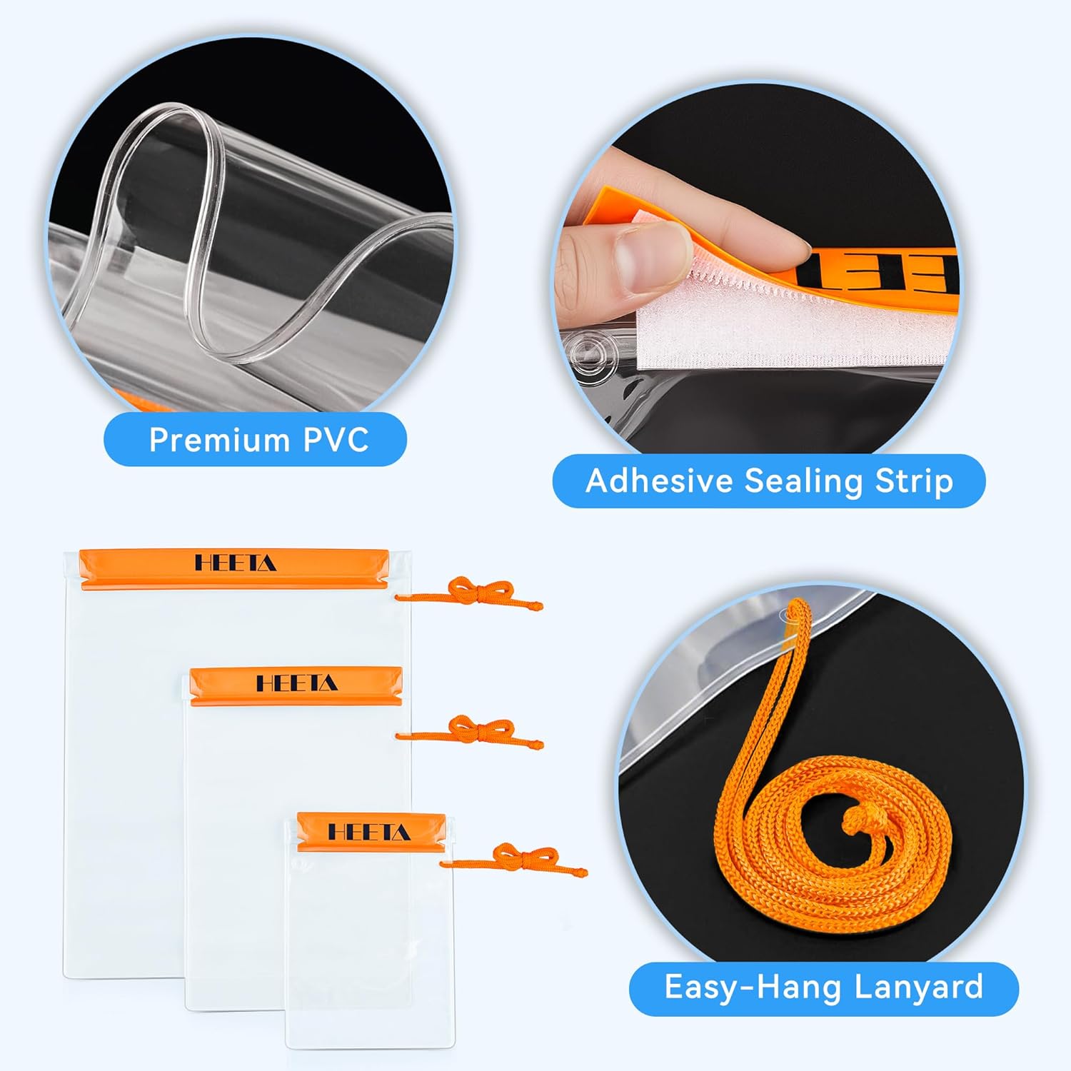 HEETA 5-Pack Clear Waterproof Dry Bag, Water Tight Cases Pouch Dry Bags for Camera Mobile Phone Maps, Kayaking Boating Document Holder