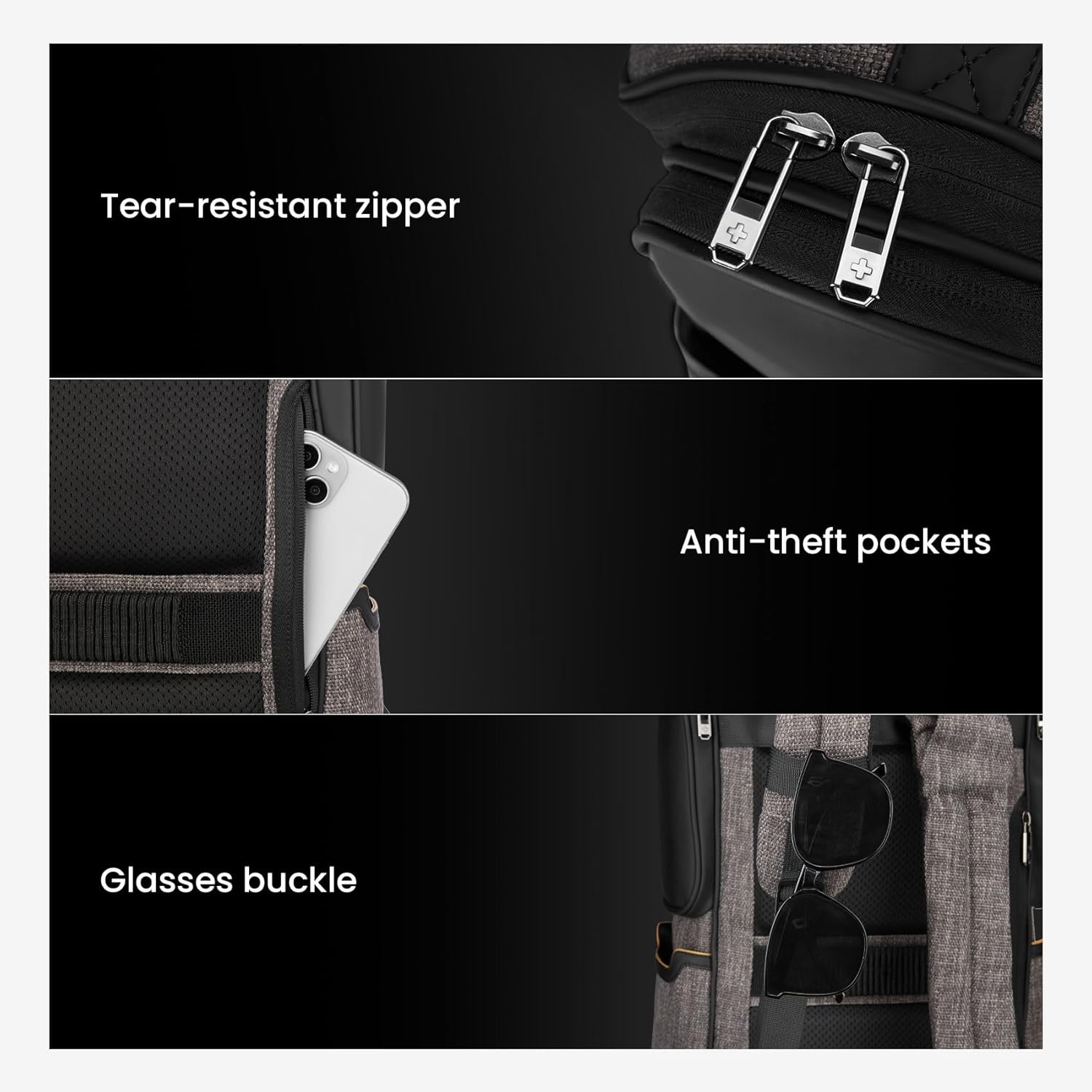 - 【Thoughtful Practical Details】CROSSGEAR laptop backpack has unique rebound luggage strap, which can be quickly and stably fixed on the suitcase for hassle-free travel. The hidden anti-theft pocket to protect your wallet and passport. Quick-dry waterproof PU base prevent water stains. Convenient glasses buckle on straps. Smooth tear-resistant zippers built to long-lasting.