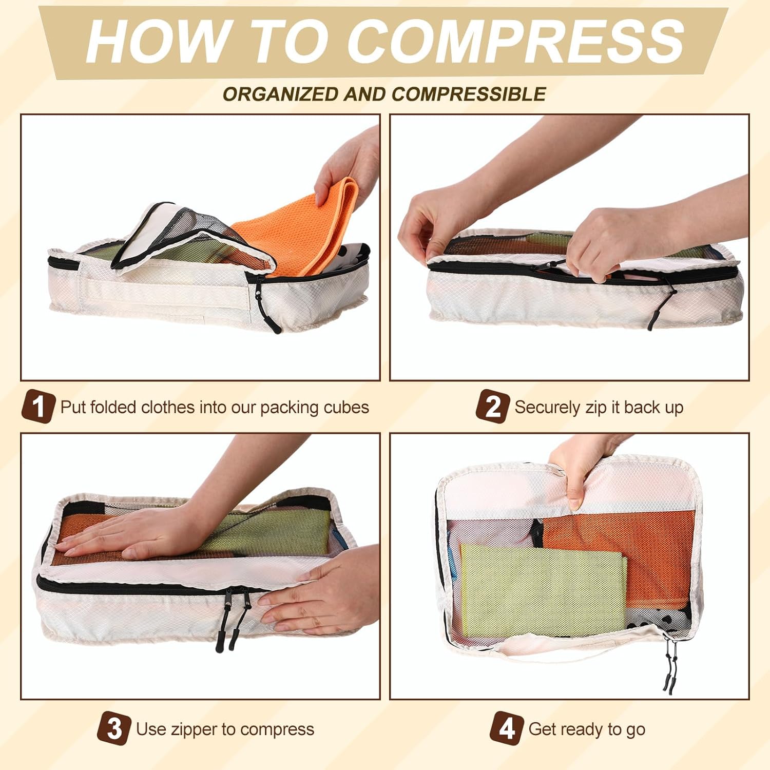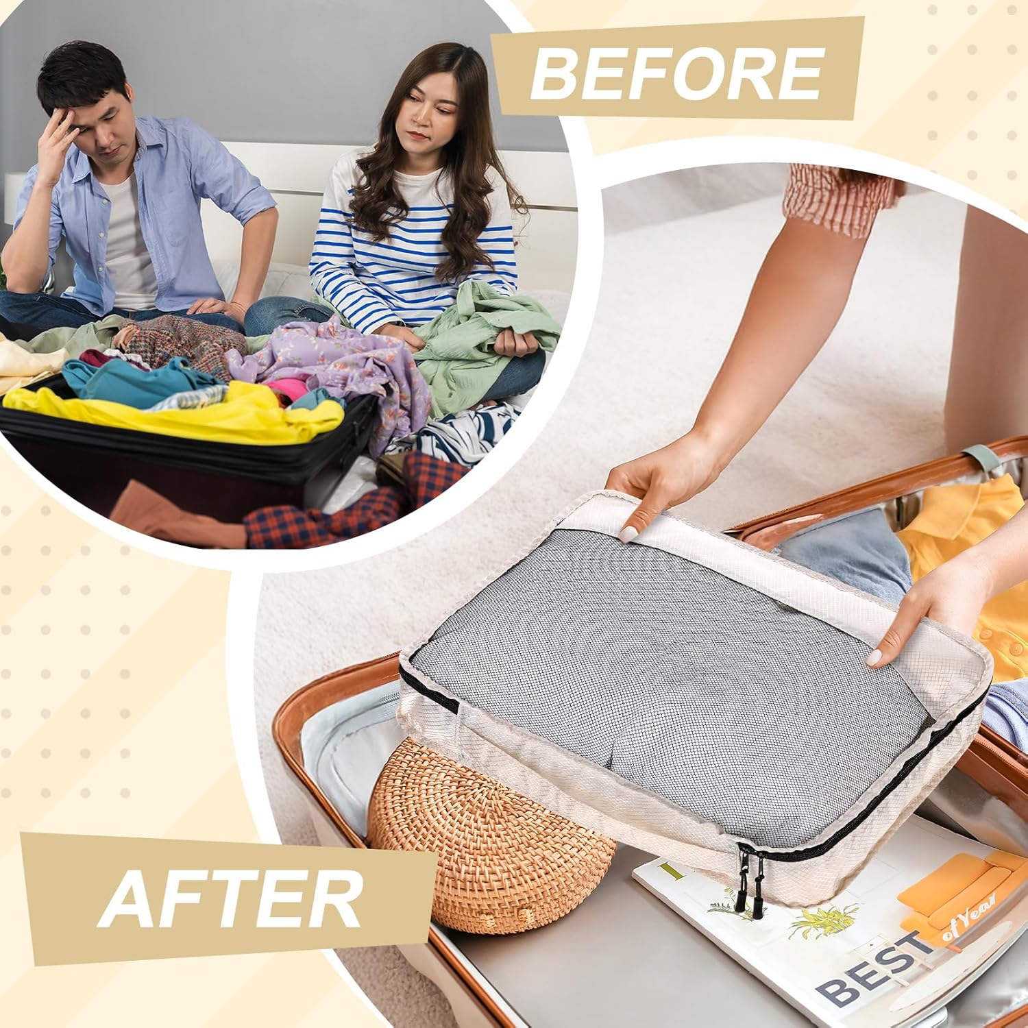 - Package Content: you receive 5 pieces of packing cubes for suitcase, measuring about 17 x 13 x 3 inches / 44 x 33 x 8 cm, which can meet your needs of packing large capacity luggage, also can be shared with your family and providing a lot of convenience for your daily life; Note: not a compression bag.If you encounter a zipper tear, please open it slowly and zip it again