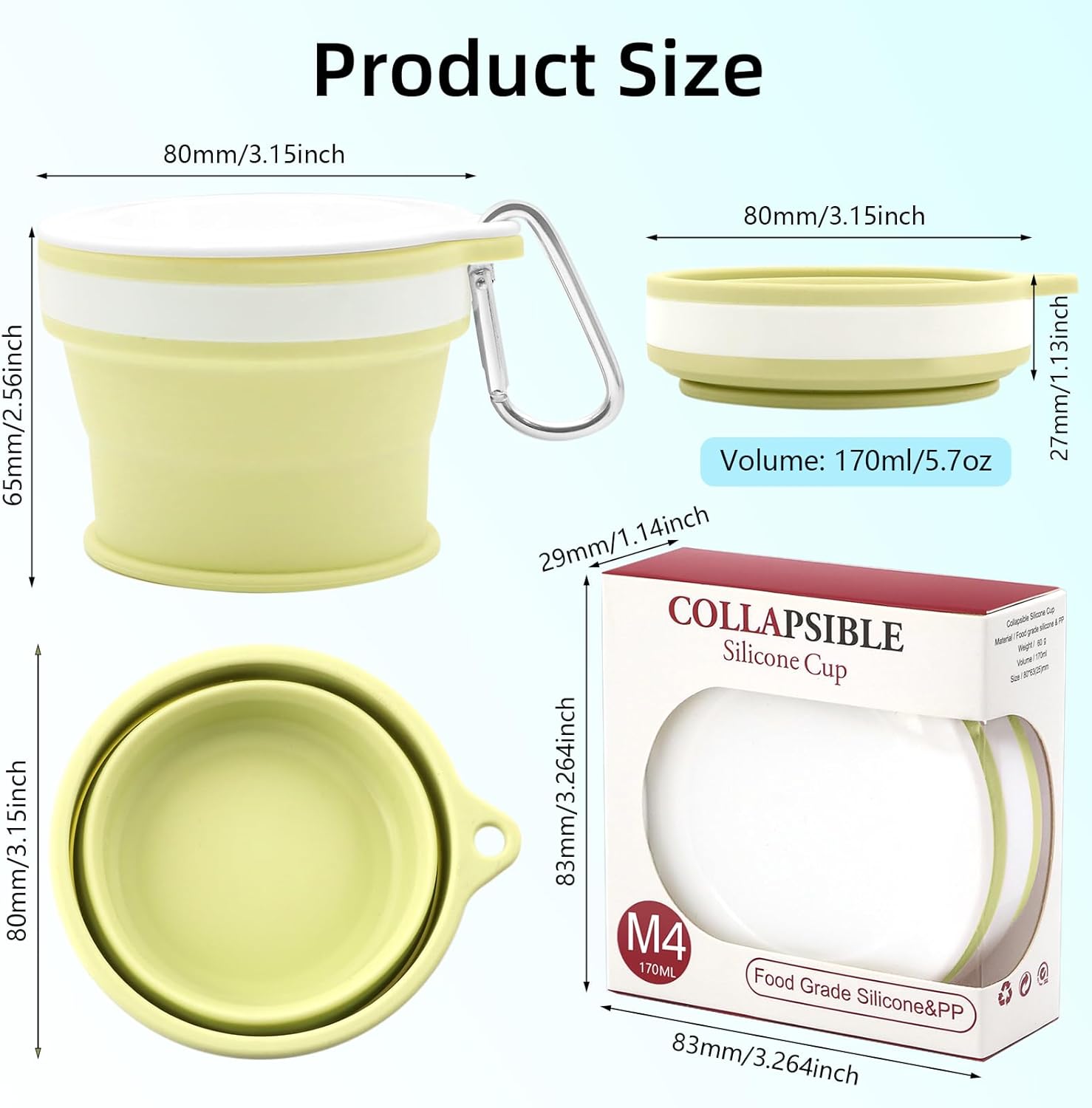 Silicone Collapsible Travel Cup Set - 4-Pack Foldable Mugs with Lids for Camping, Backpacking, Coffee & Outdoor (170ml, Pink/Light Green/Dark Green/Gray)