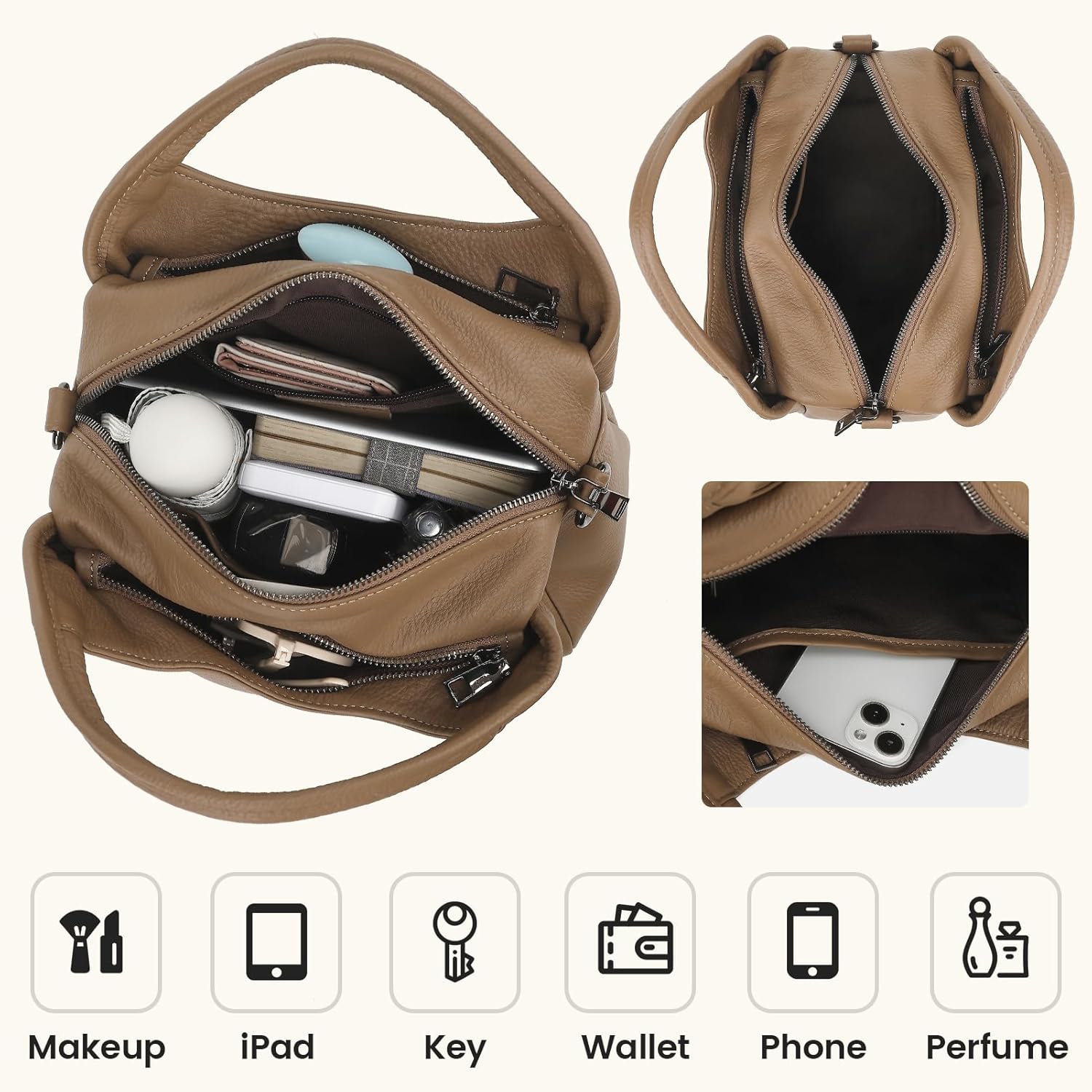 KOGTLA Genuine Leather Purses for Women, Crossbody Shoulder Bags with Top-Handle, Tote Satchel Handbags