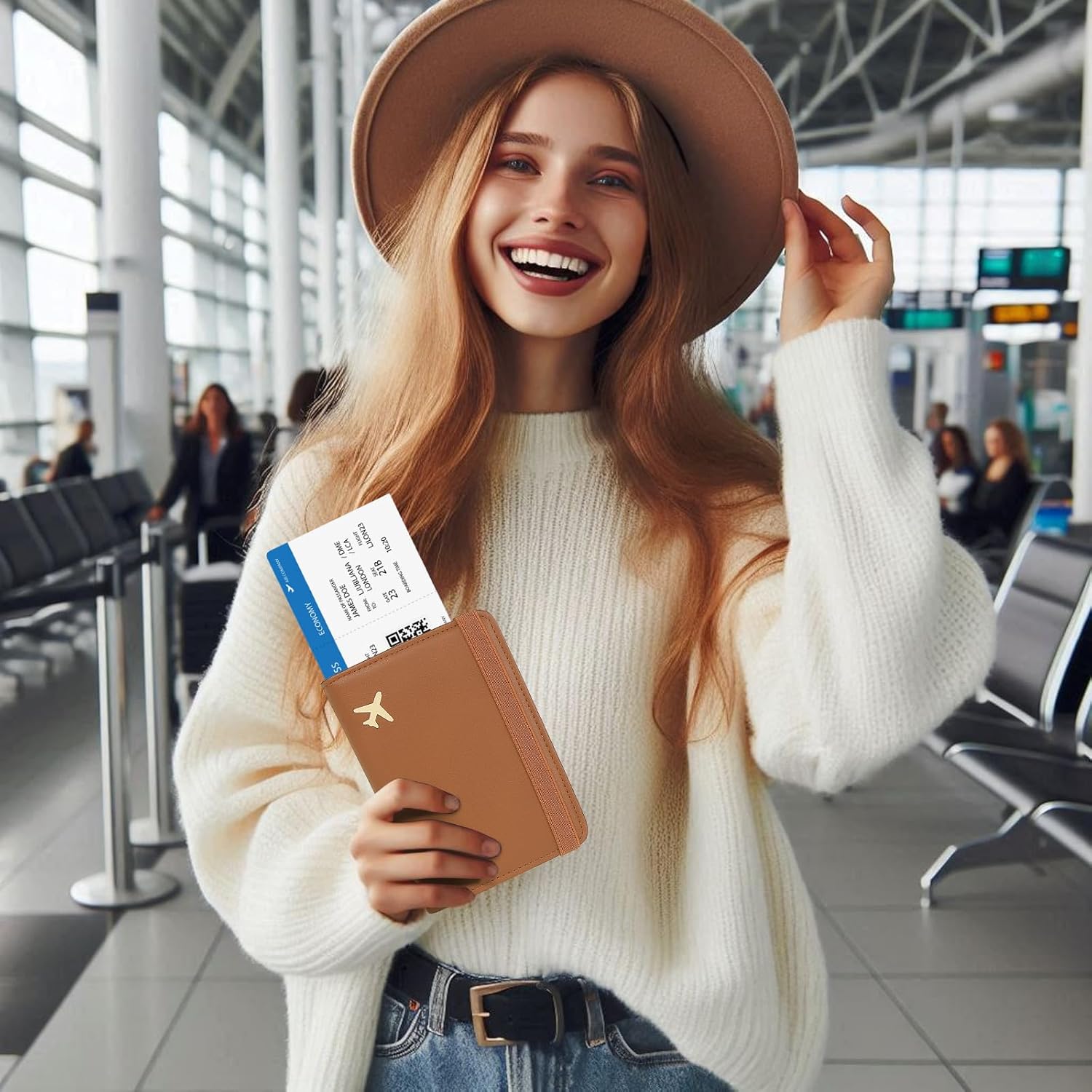 Passport Holder for Travel, Rfid Passport Cover Case, Passport Wallet Women Travel Essentials Accessories Document Organizer with Elastic Band, Brown